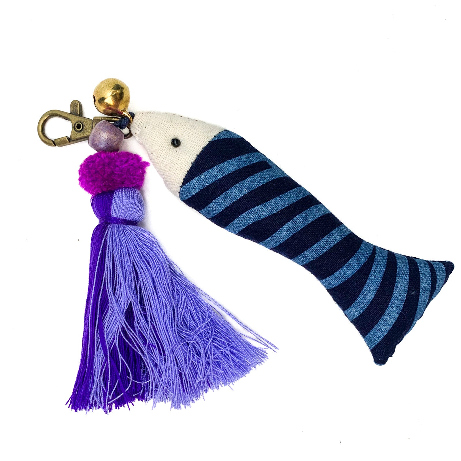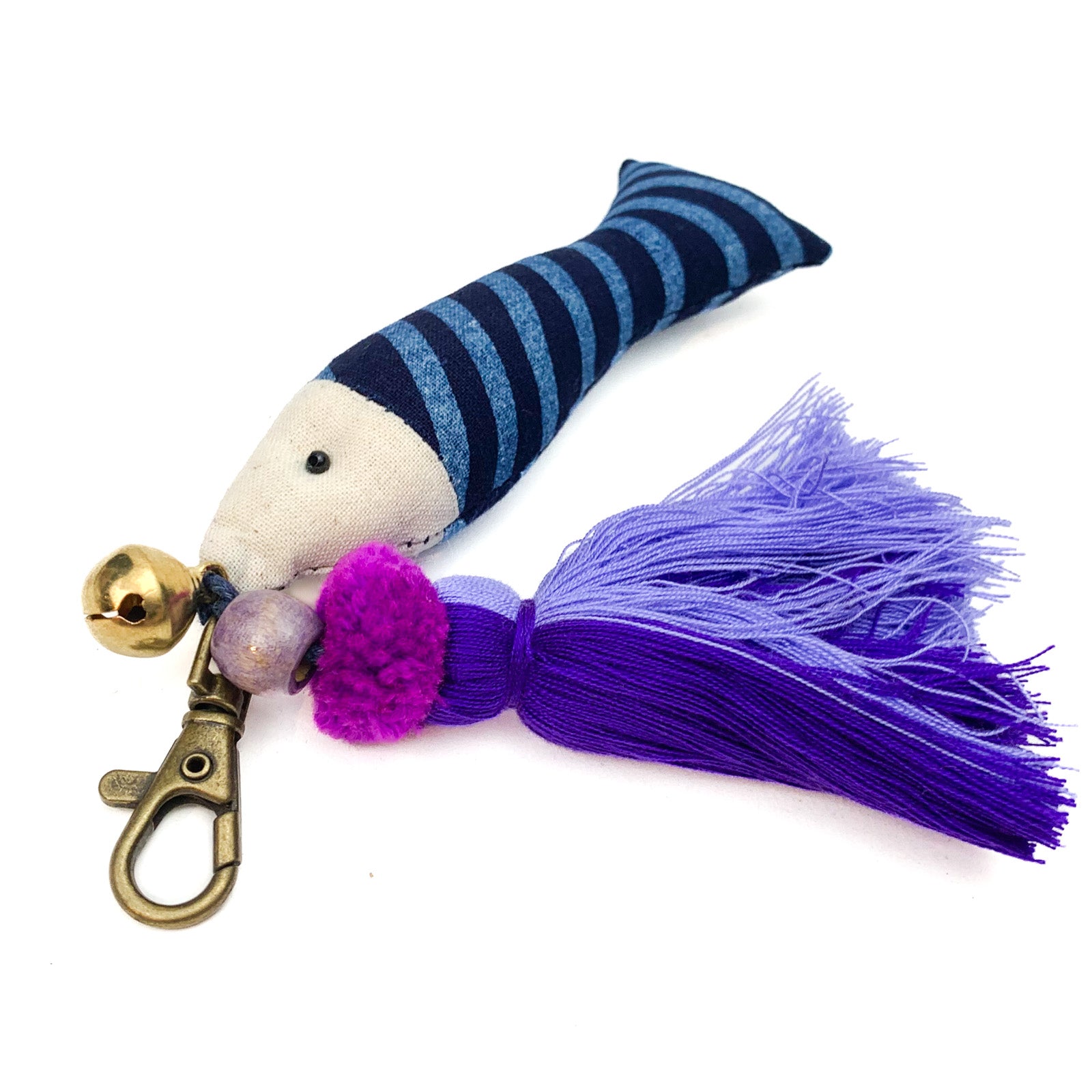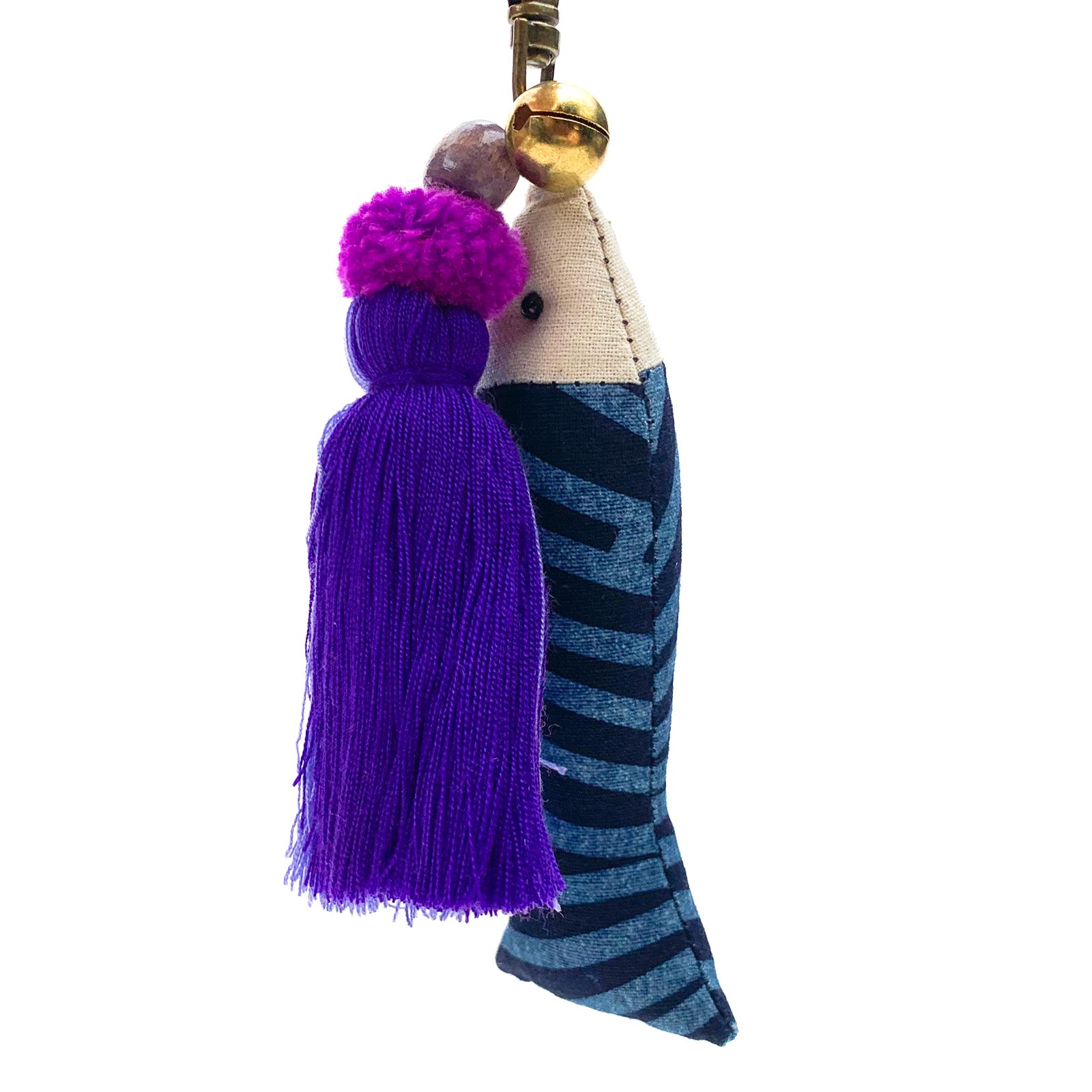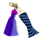 • Hilltribe Indigo Ikat Fish & Tassel Keychain, Purple Tassel
