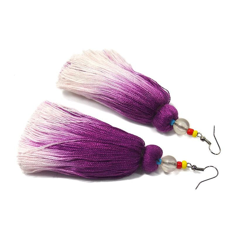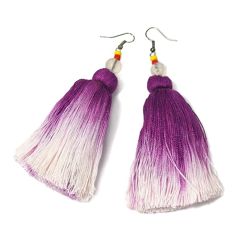 Ombre Tassel Hilltribe Earrings, E