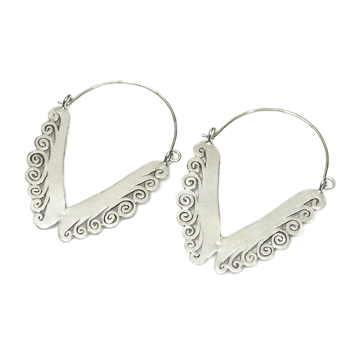 Sterling Silver Curly Chevron Hilltribe Earrings