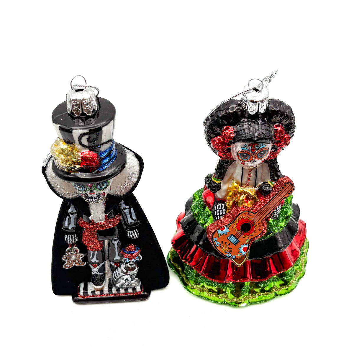 Day Of The Dead Girl & Boy Muñecos (Dolls) Glass Ornament