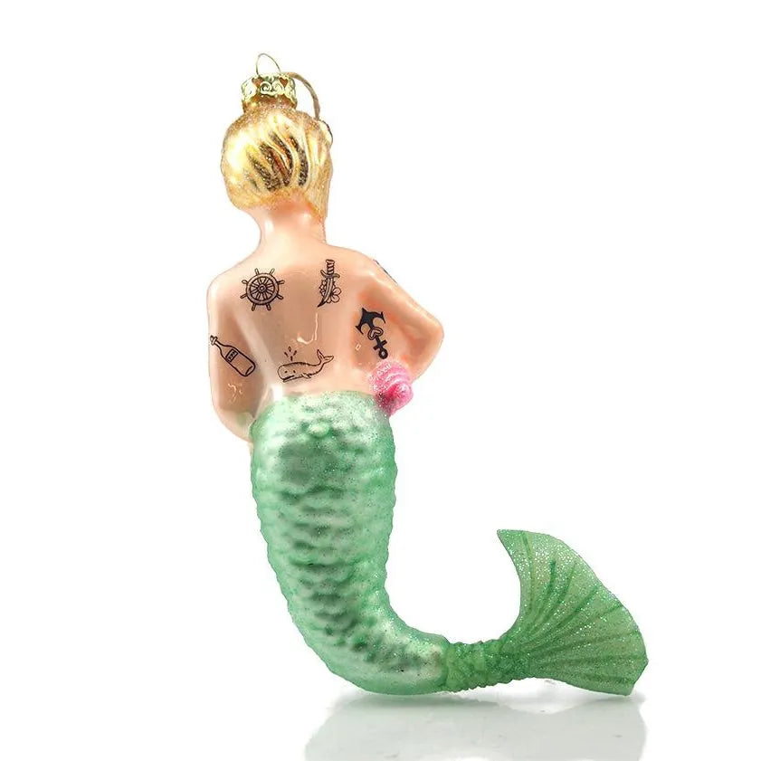 Large Tattooed Mermaid Glass Ornament