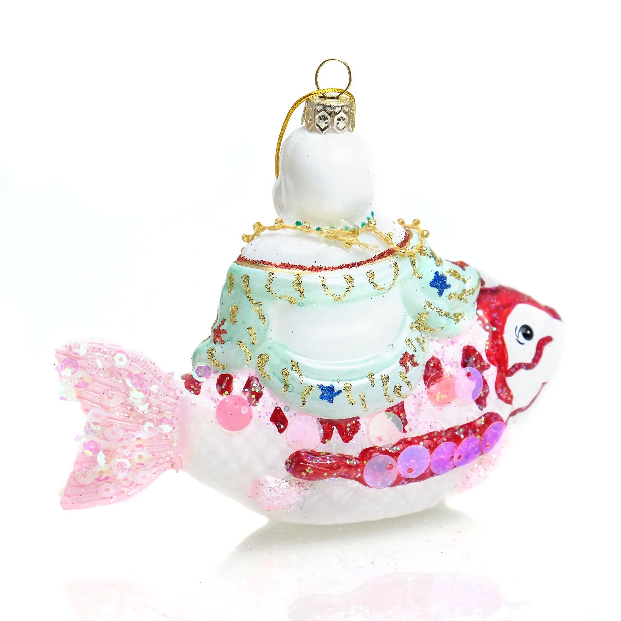 Lucky Fat Buddha Abundance Fish Glass Ornament