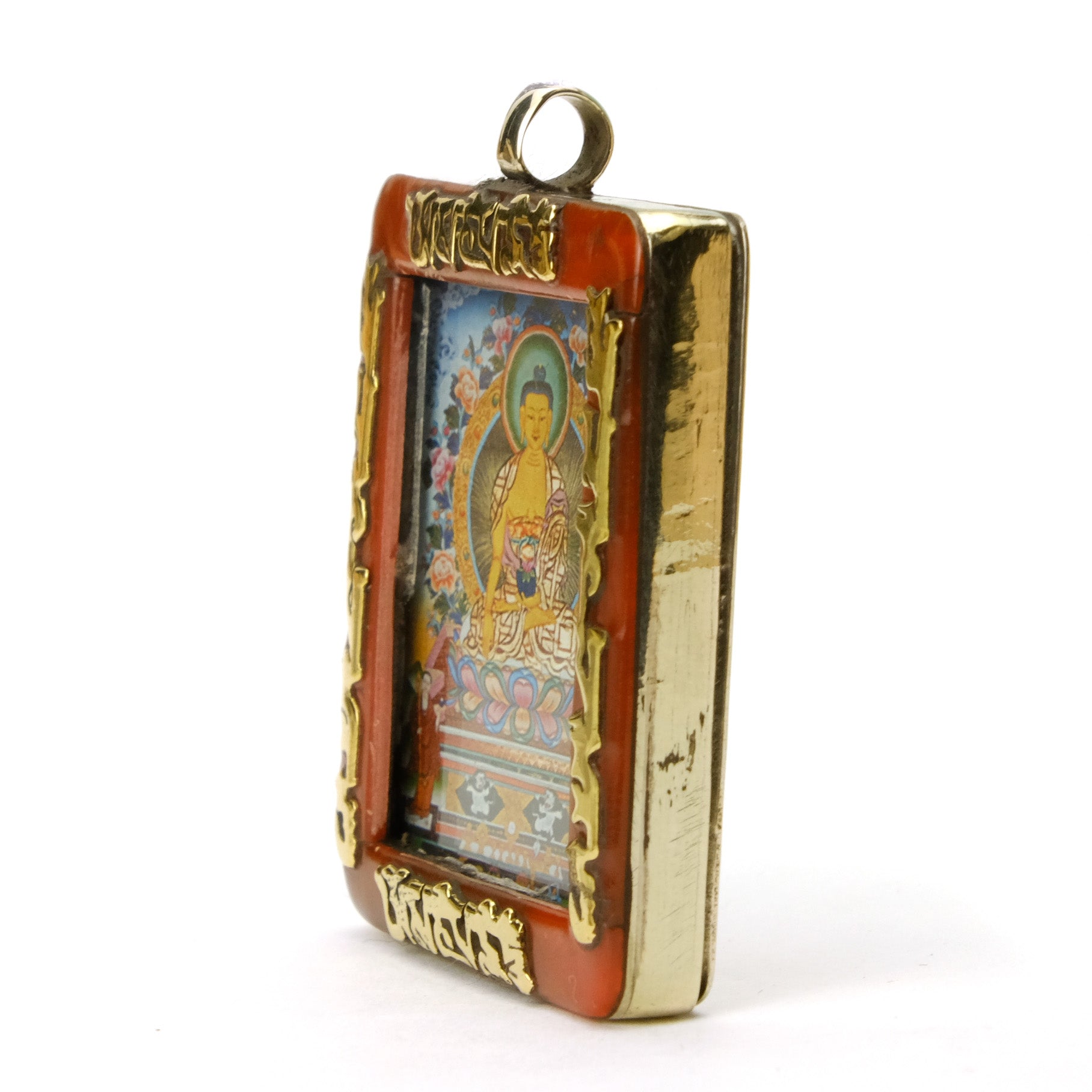 Tibetan Deity Shakyamuni Buddha Pendant Blue Howlite Border with Ohm Mani Padme Ohm Verse # 43 - 5
