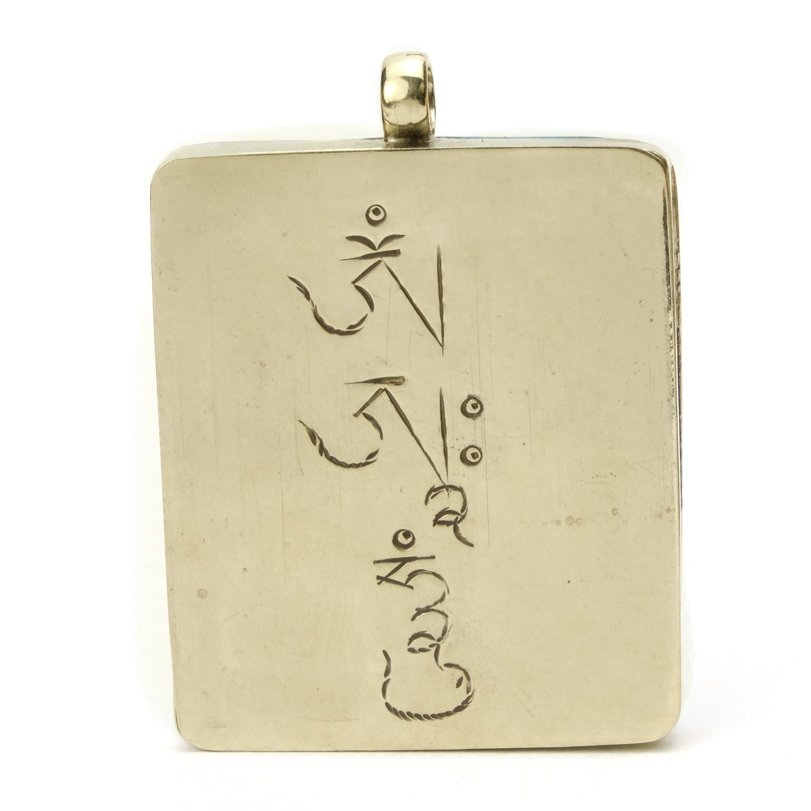 Tibetan Deity Medicine Buddha Pendant Blue Howlite Border with Ohm Mani Padme Ohm Verse # 43 - 2