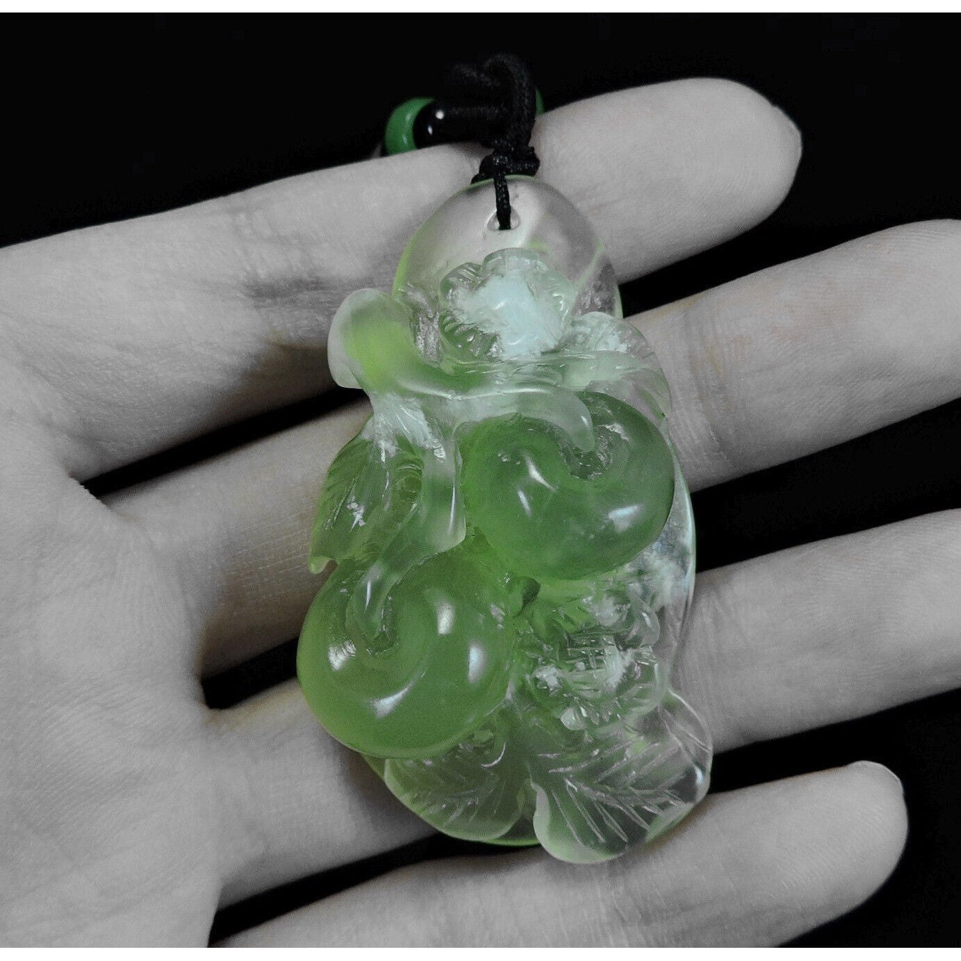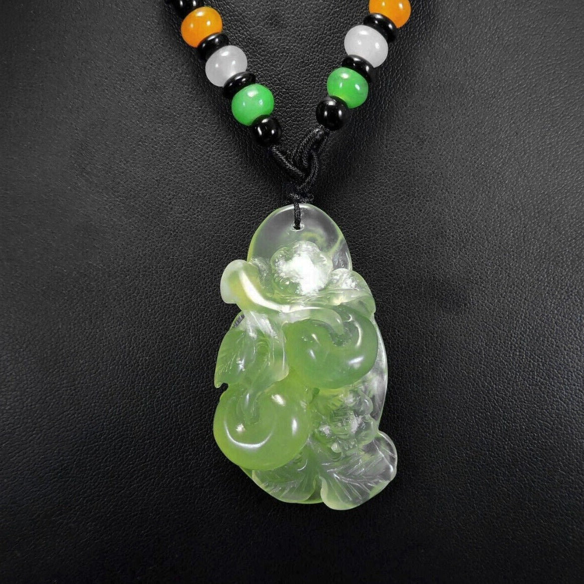 100% Natural Hand-Carved Jade Pendant Jadeite Necklace Apple Tree