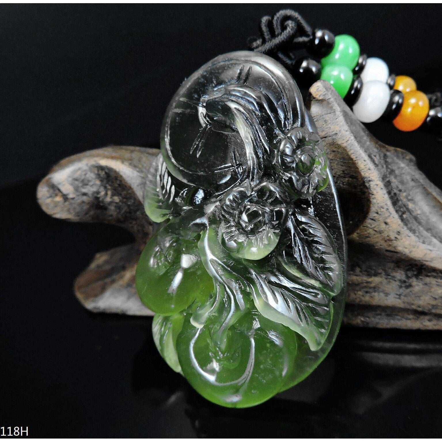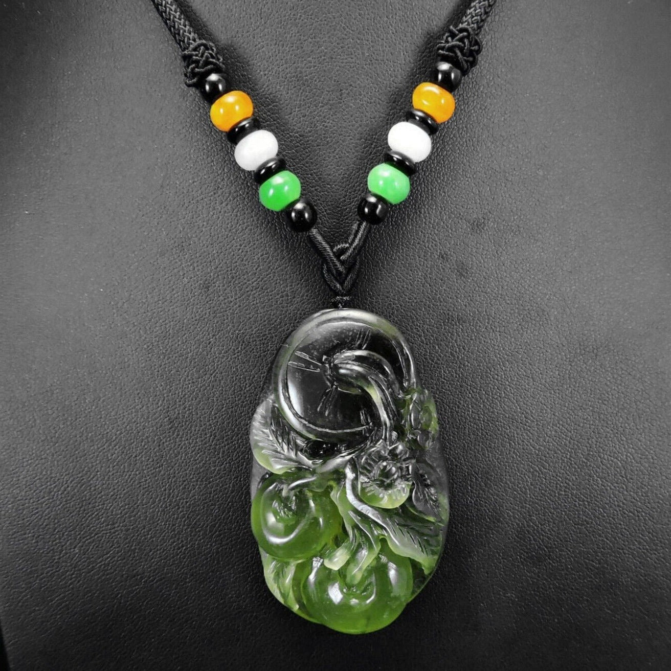 100% Natural Hand-Carved Jade Pendant Jadeite Necklace Apple Tree & Coin