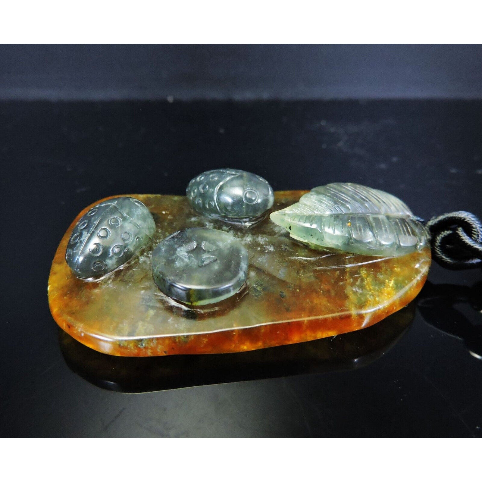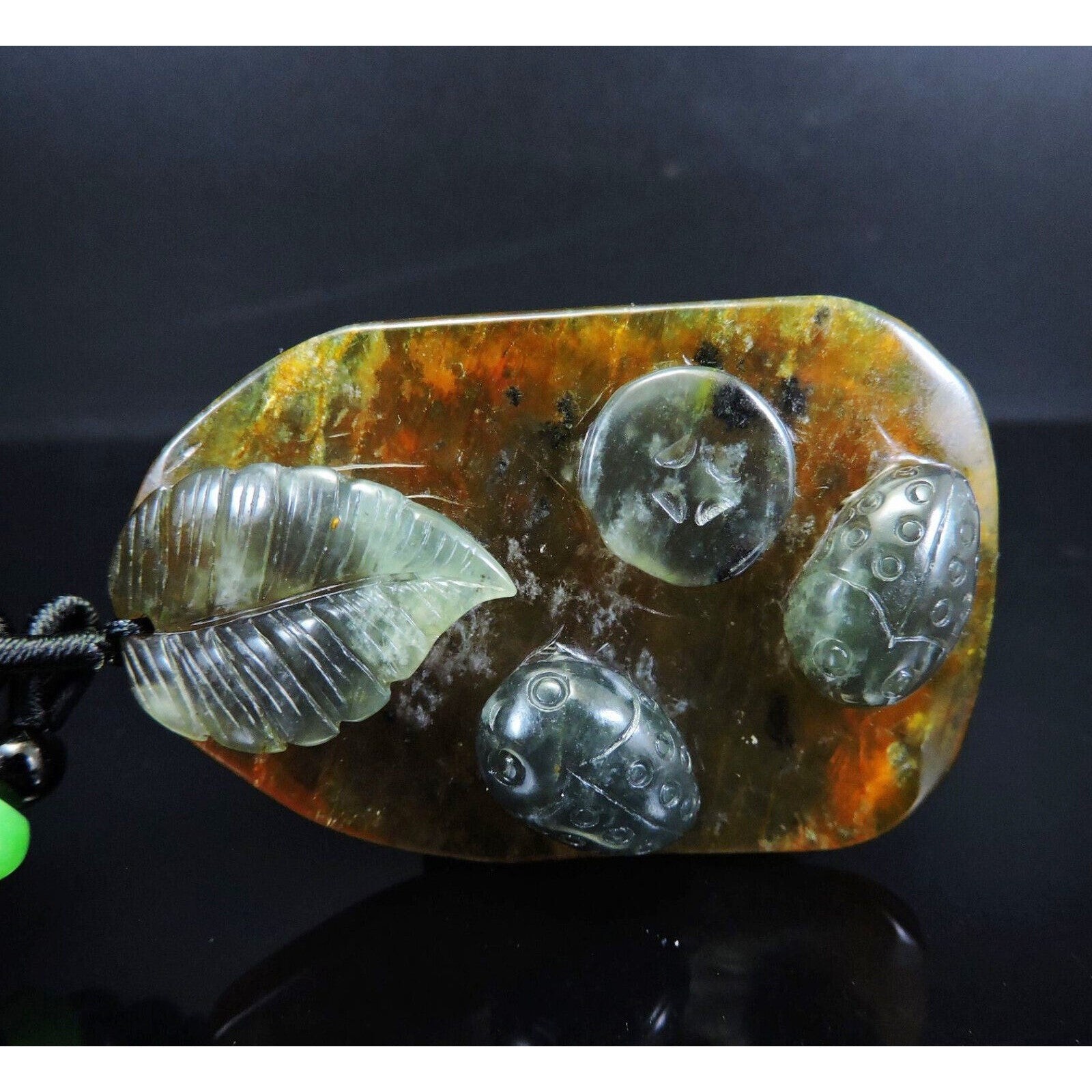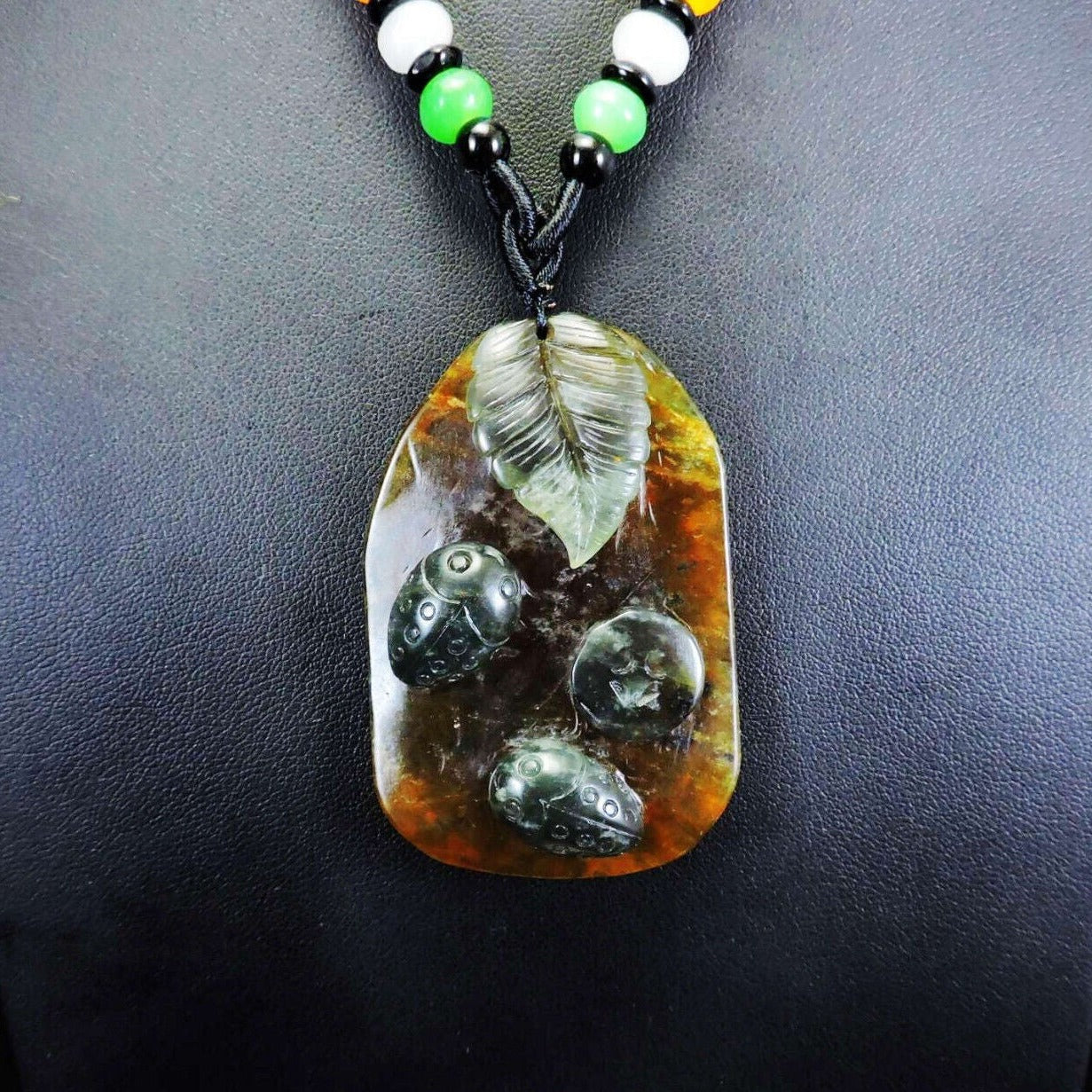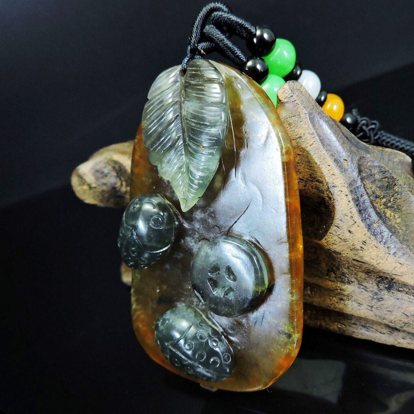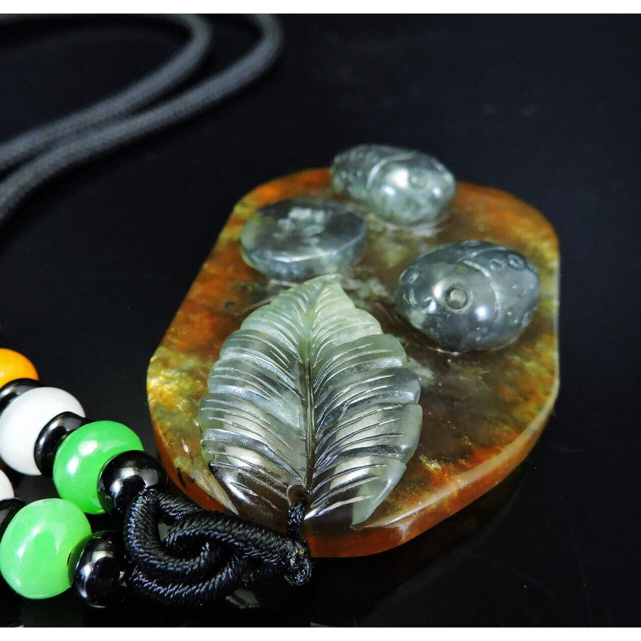 100% Natural Hand-Carved Jade Pendant Jadeite Necklace Beetle & Leaf & Coin
