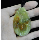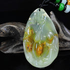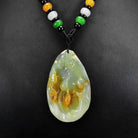 100% Natural Hand-Carved Jade Pendant Jadeite Necklace Buddha & Lotus