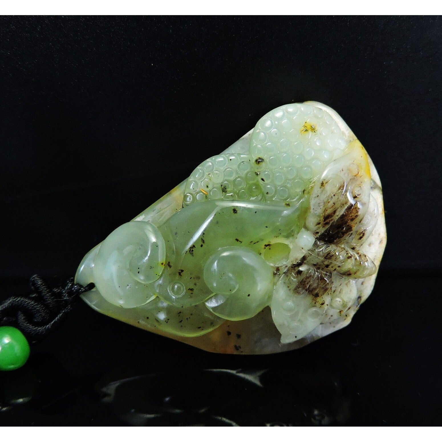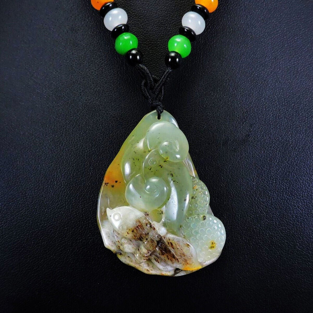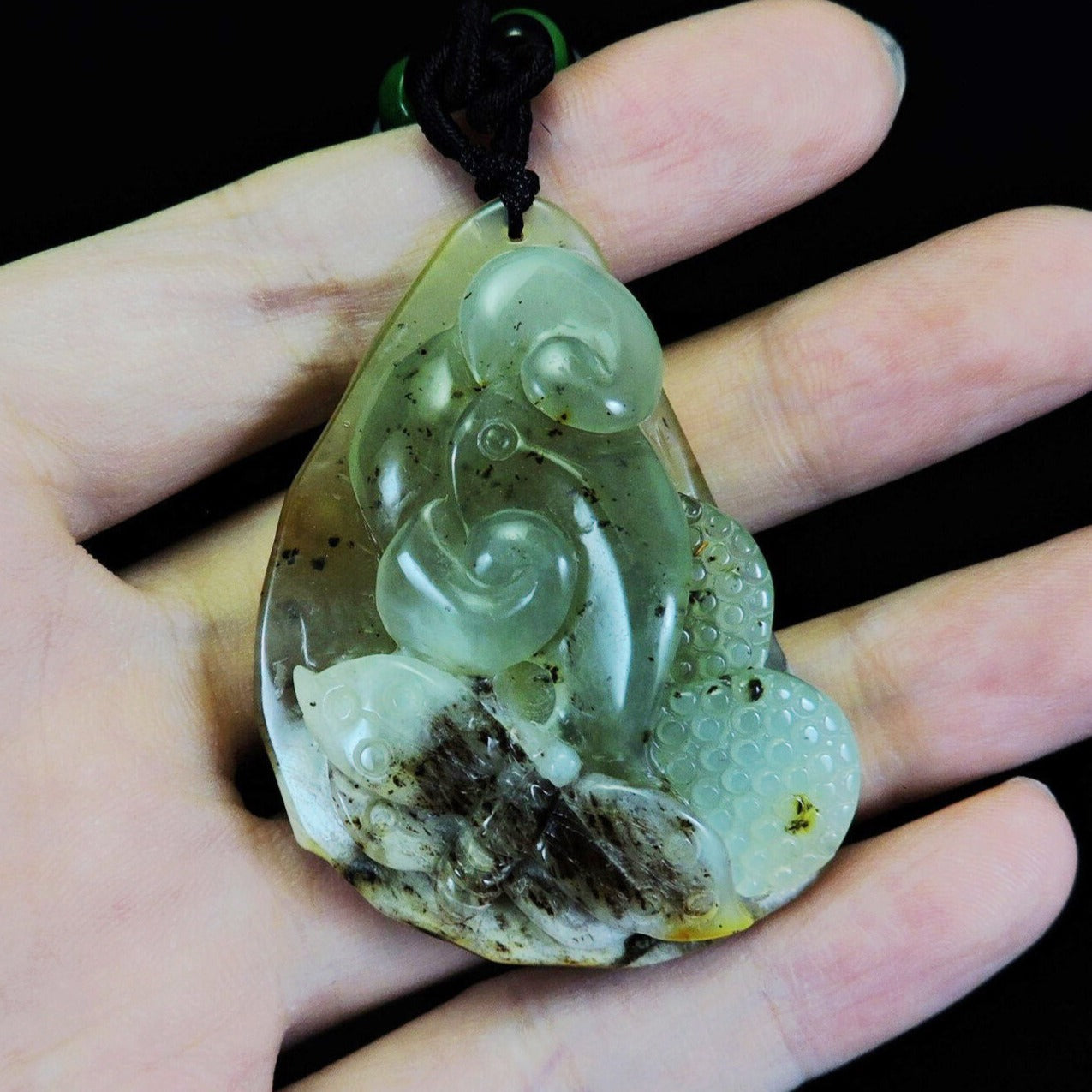 100% Natural Hand-Carved Jade Pendant Jadeite Necklace Butterfly & Ruyi