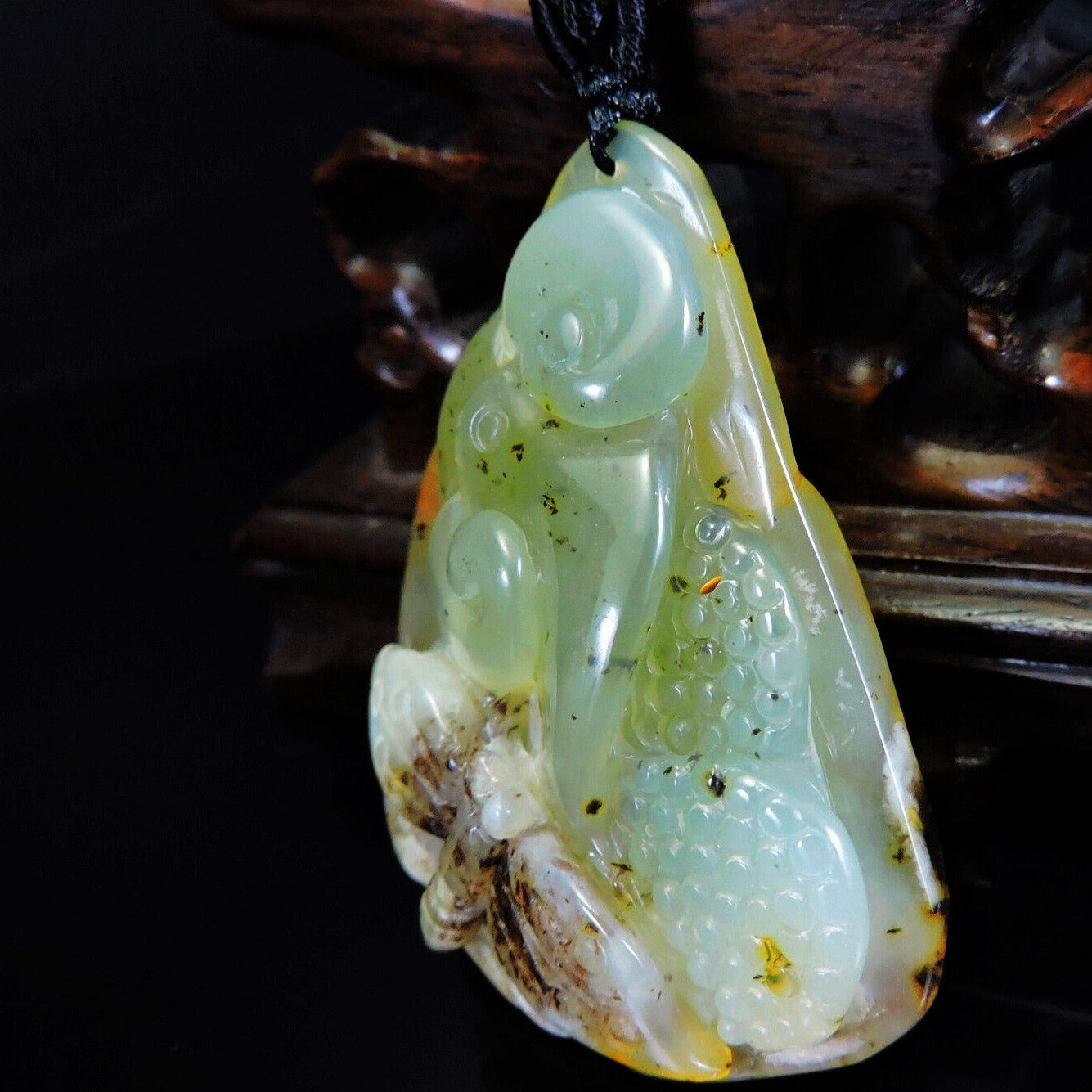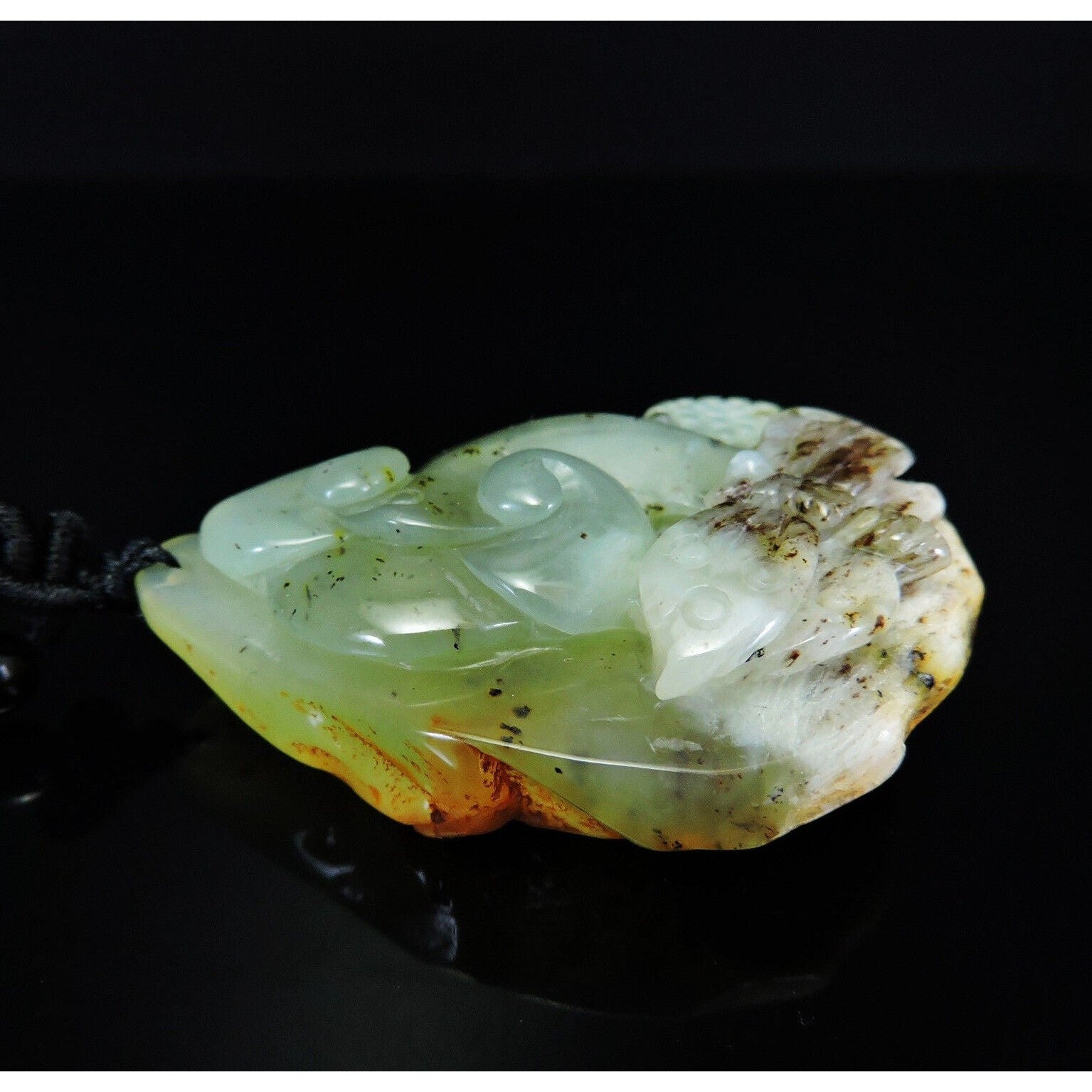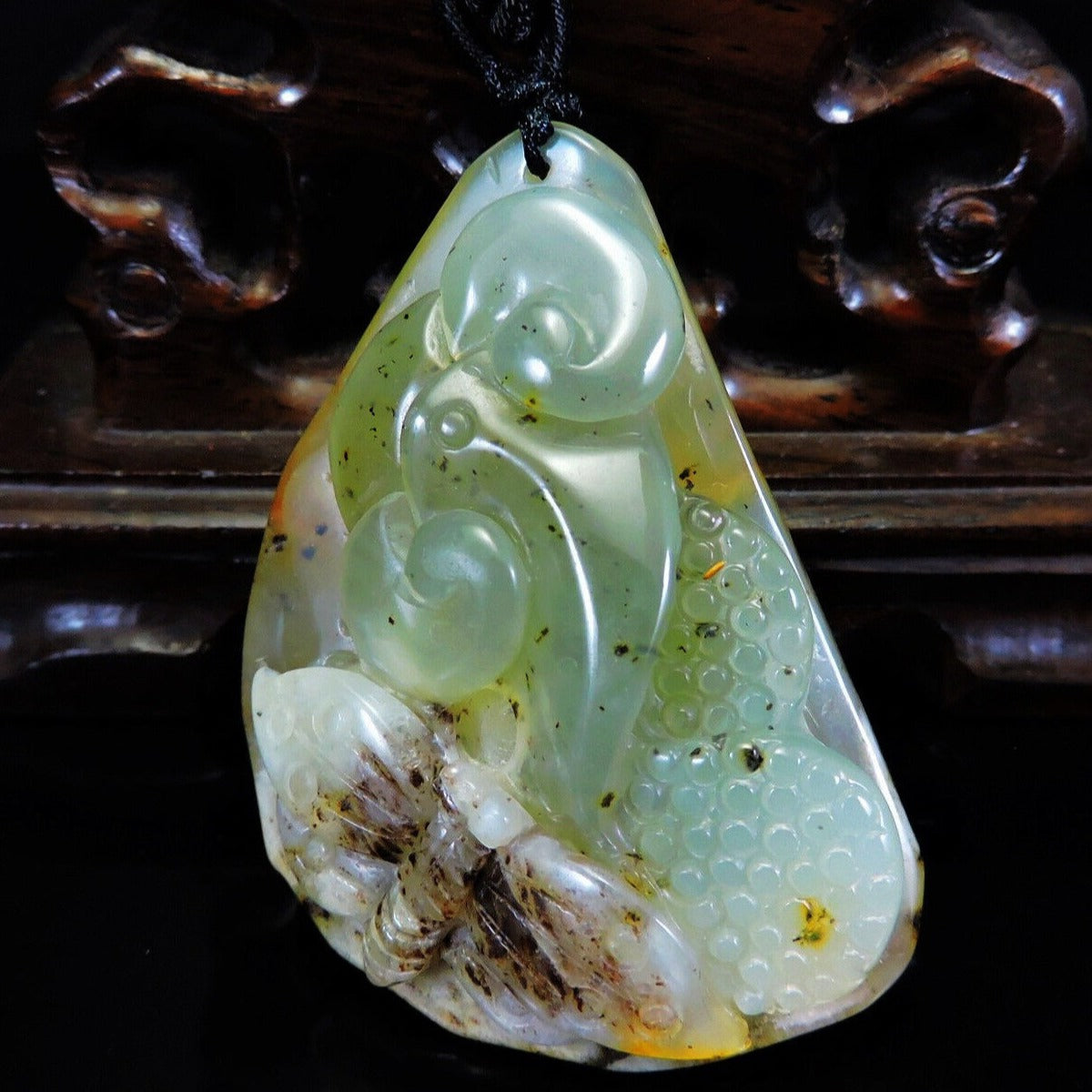 100% Natural Hand-Carved Jade Pendant Jadeite Necklace Butterfly & Ruyi