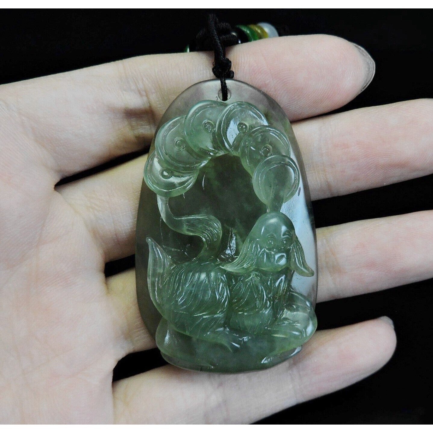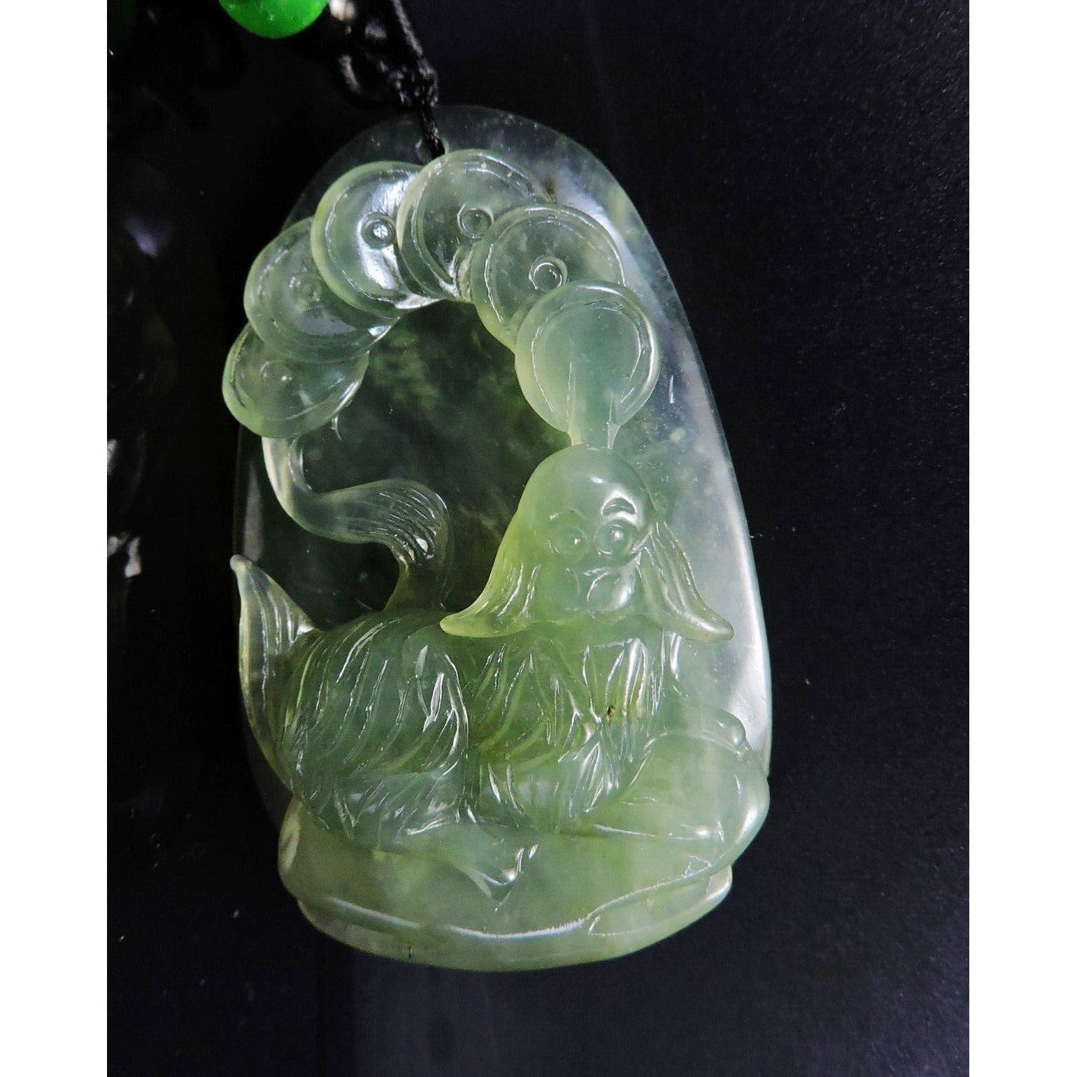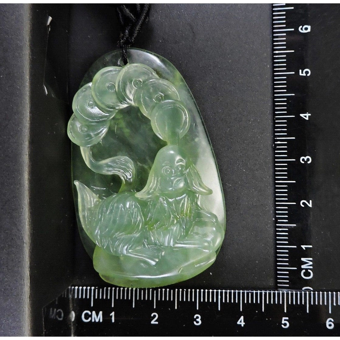 100% Natural Hand-Carved Jade Pendant Jadeite Necklace Dog & Coin