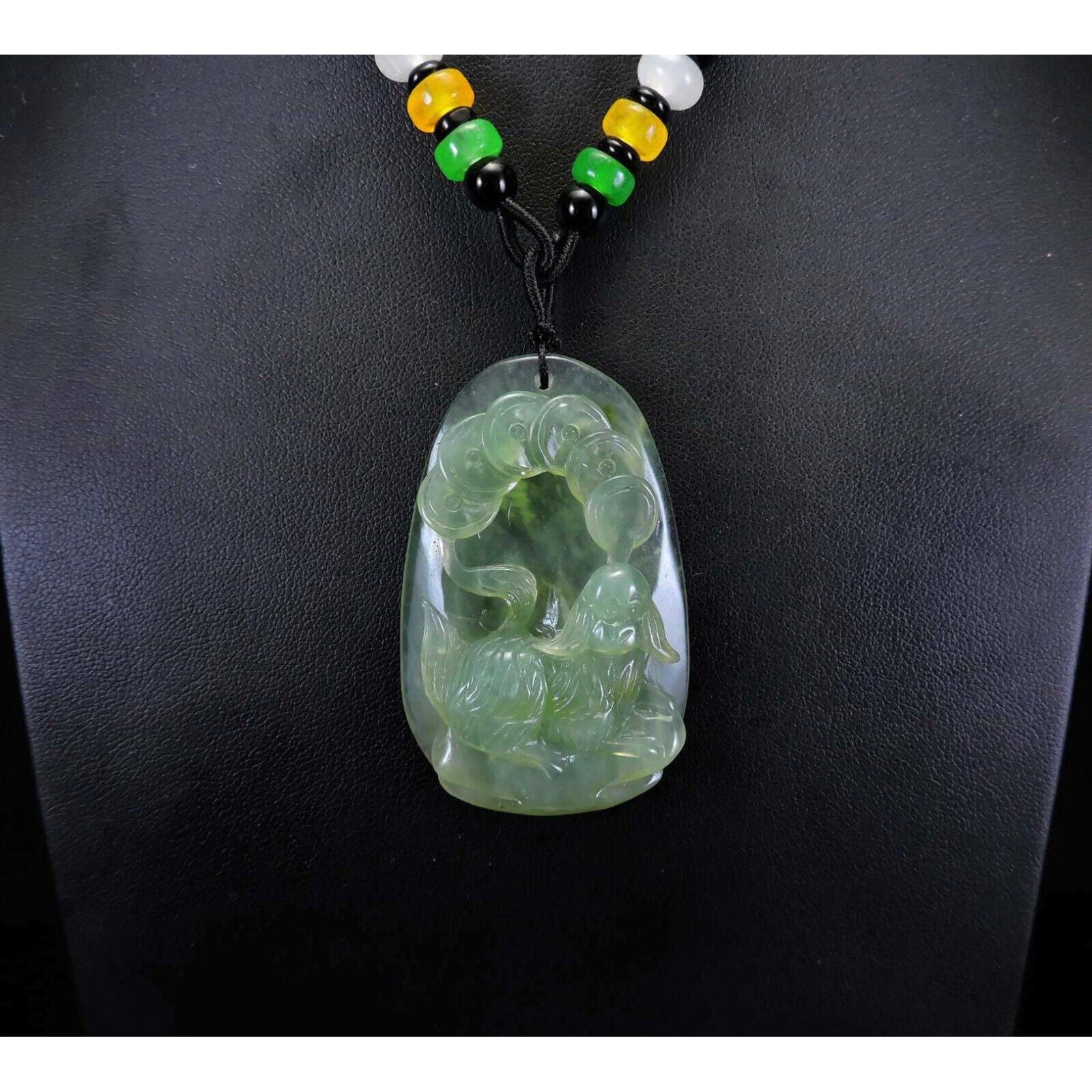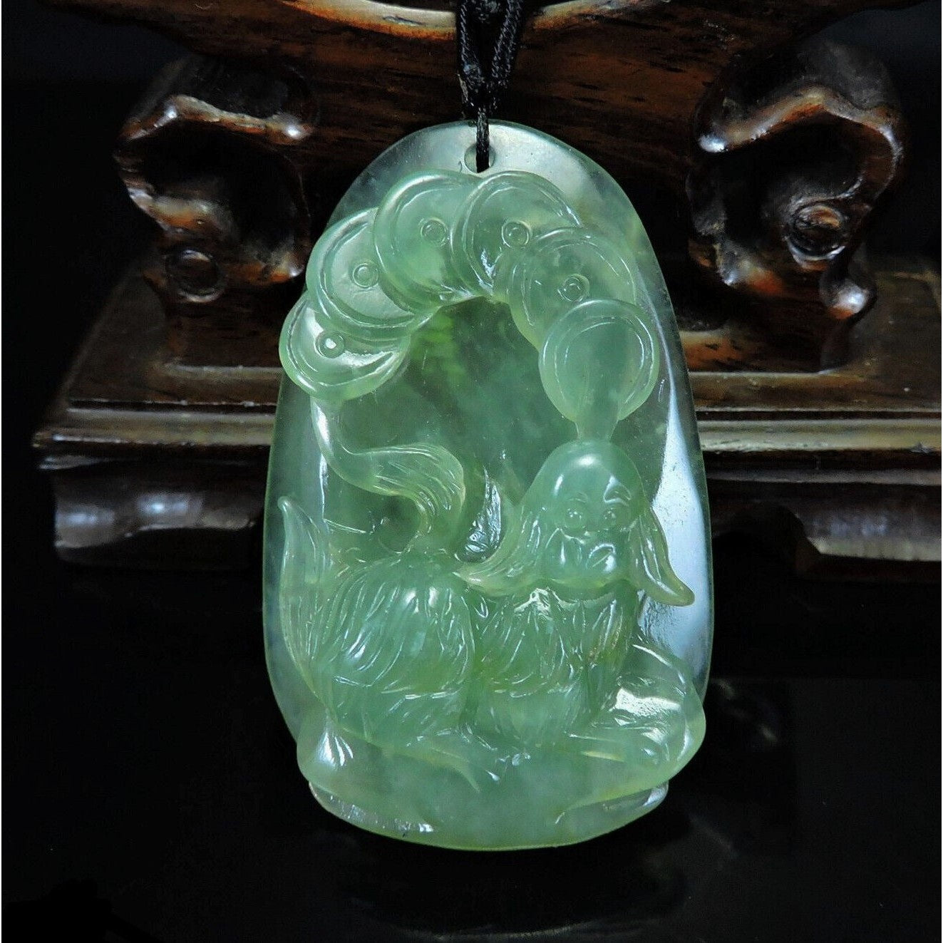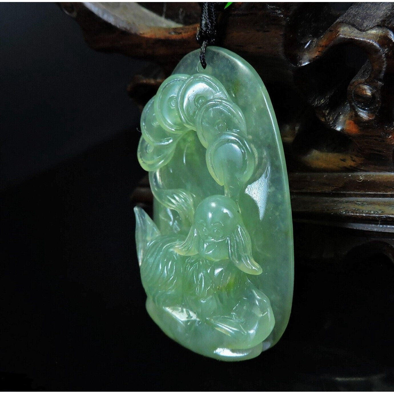 100% Natural Hand-Carved Jade Pendant Jadeite Necklace Dog & Coin
