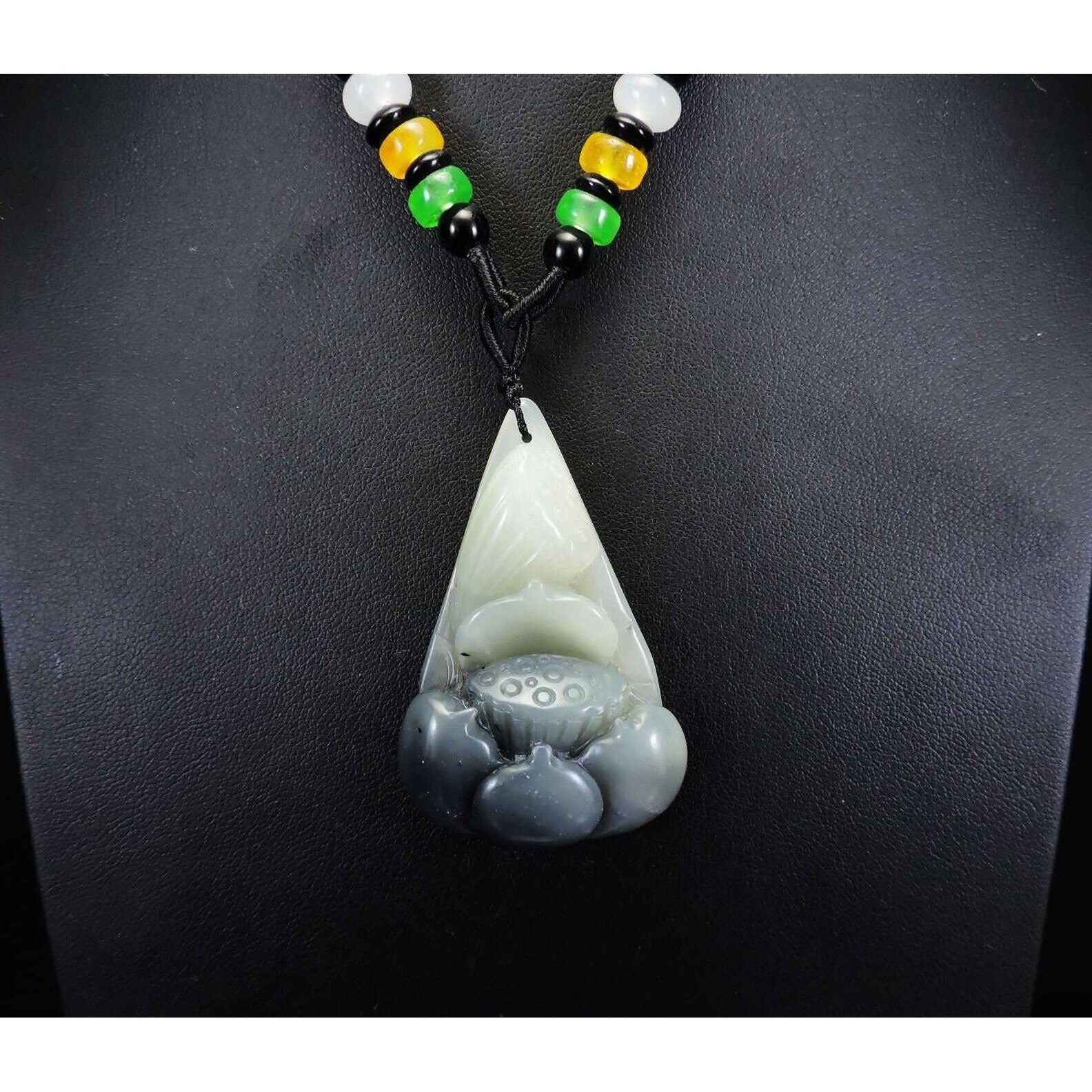 100% Natural Hand-Carved Jade Pendant Jadeite Necklace Lotus Flower