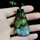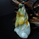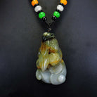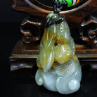 100% Natural Hand-Carved Jade Pendant Jadeite Necklace Peanut & Leaves & Ruyi