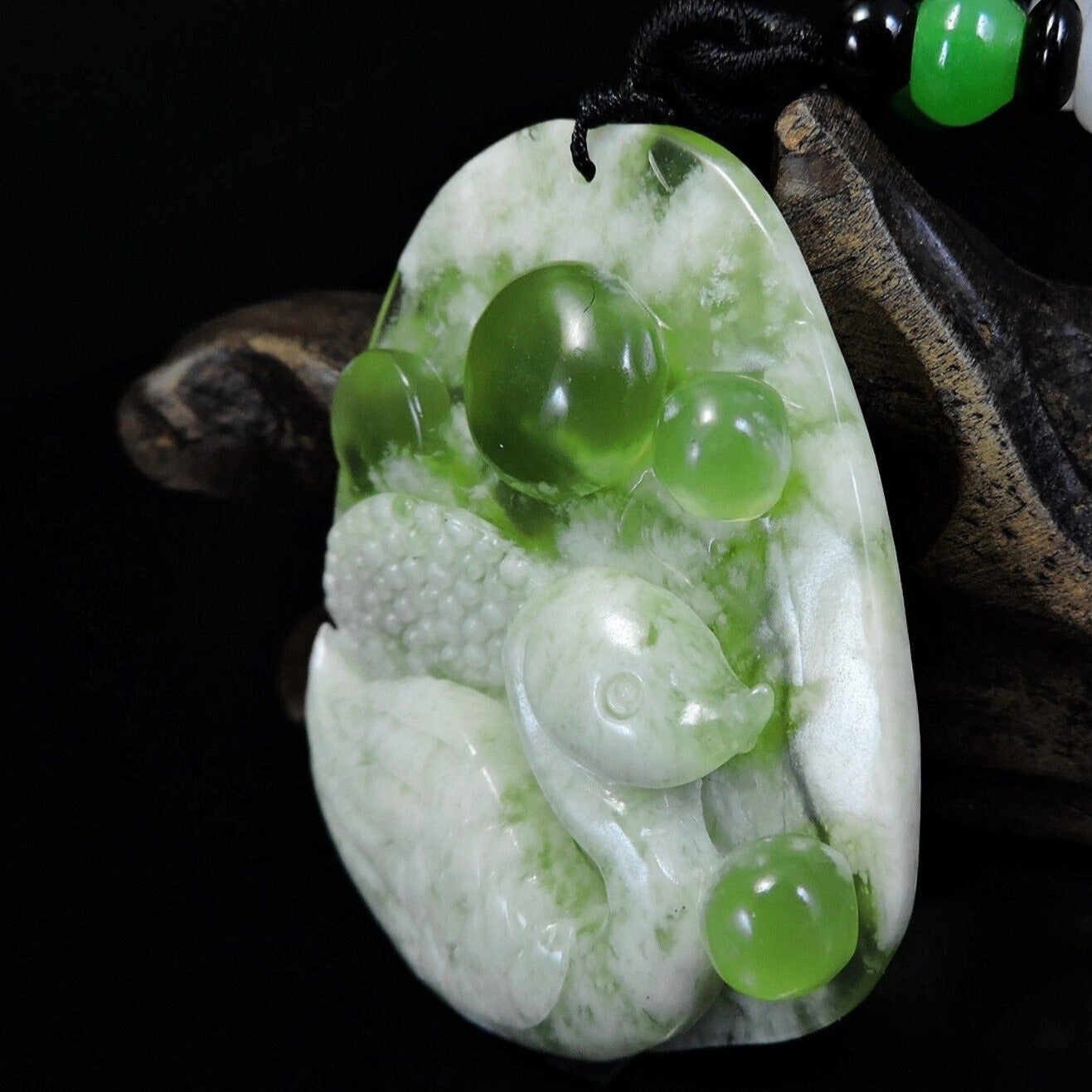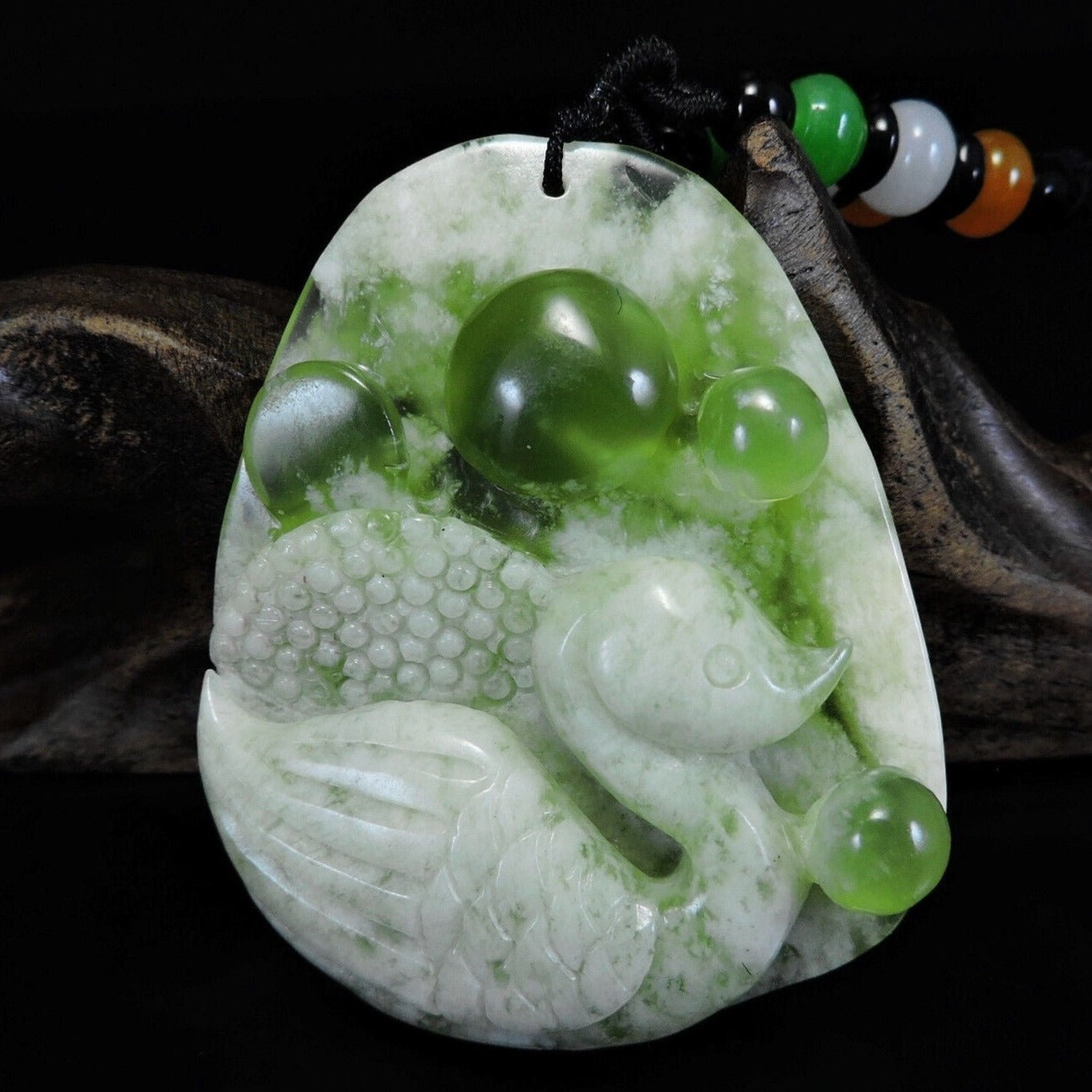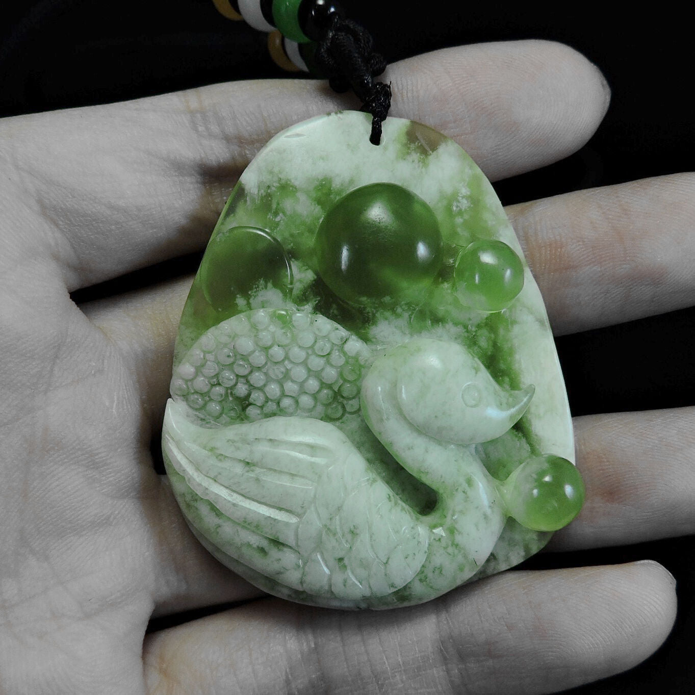 100% Natural Hand-Carved Jade Pendant Jadeite Necklace Swan & Coin