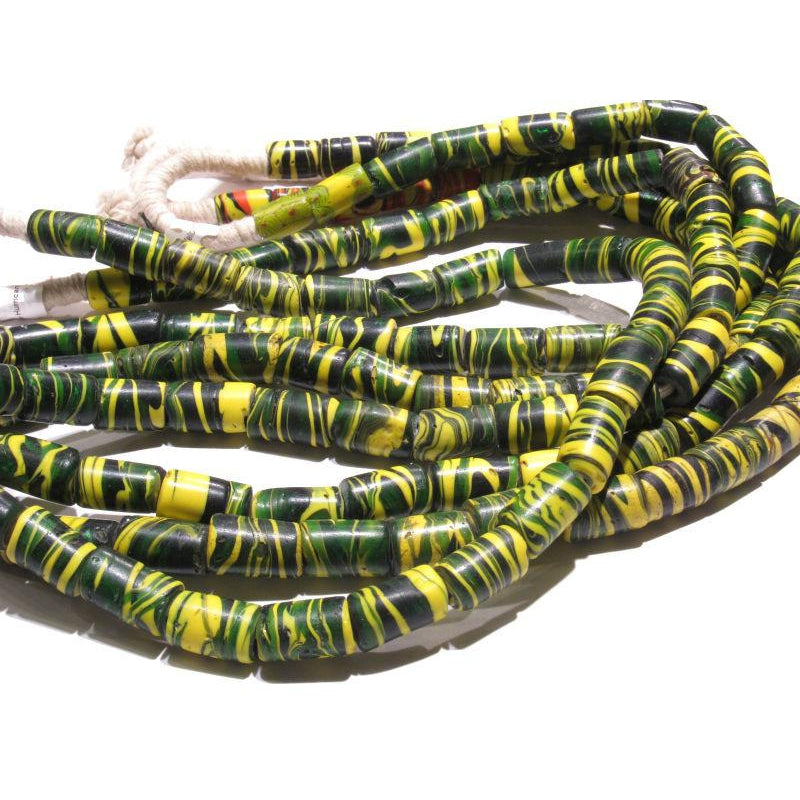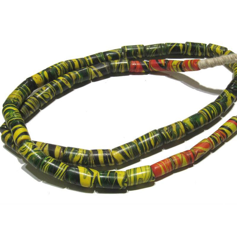 19th C. Venetian Yellow "Hurricane" Tiger Striped Beads / Necklace