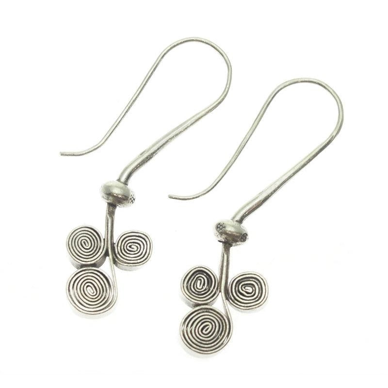Three Scroll Swirl Hilltribe 98% Pure Silver Earrings
