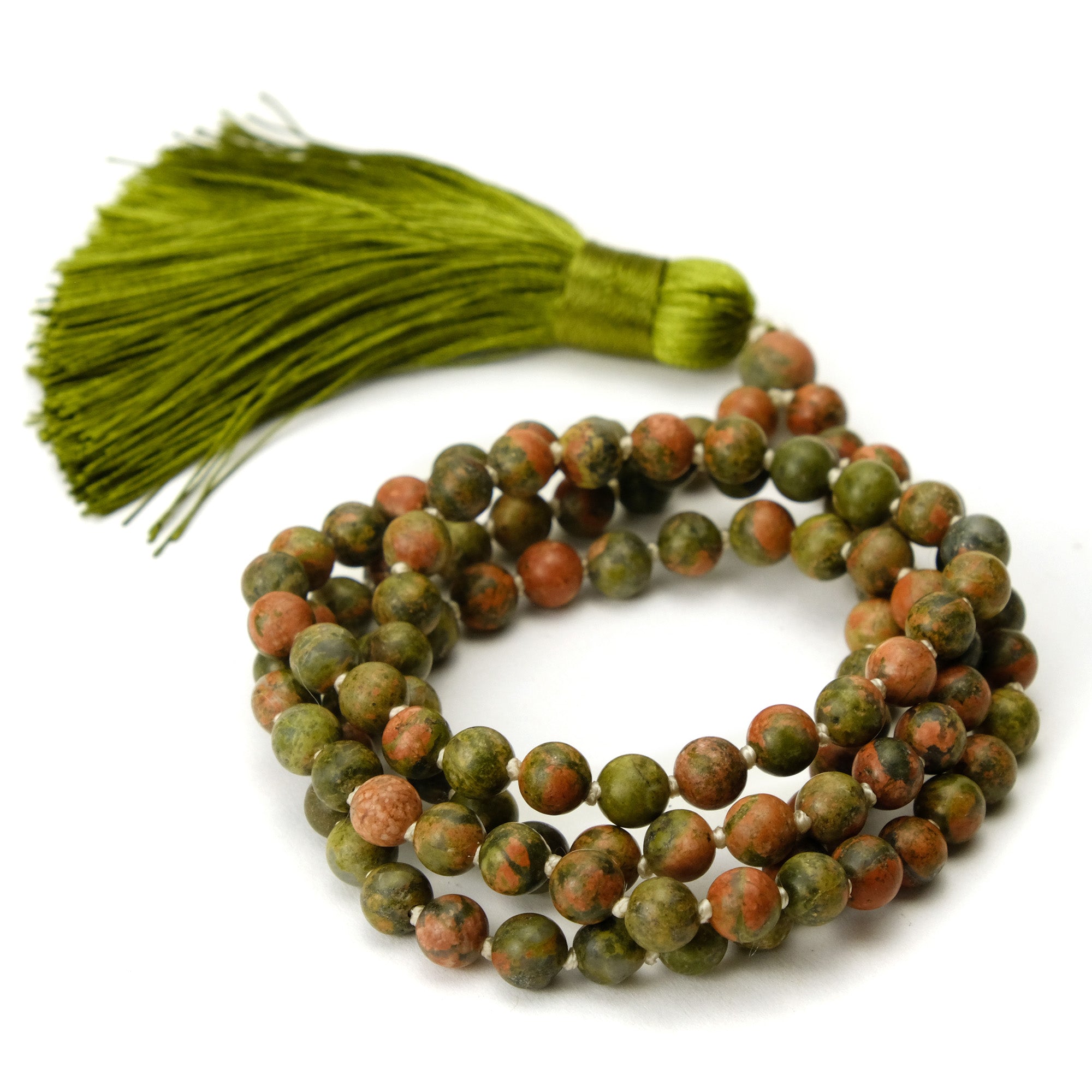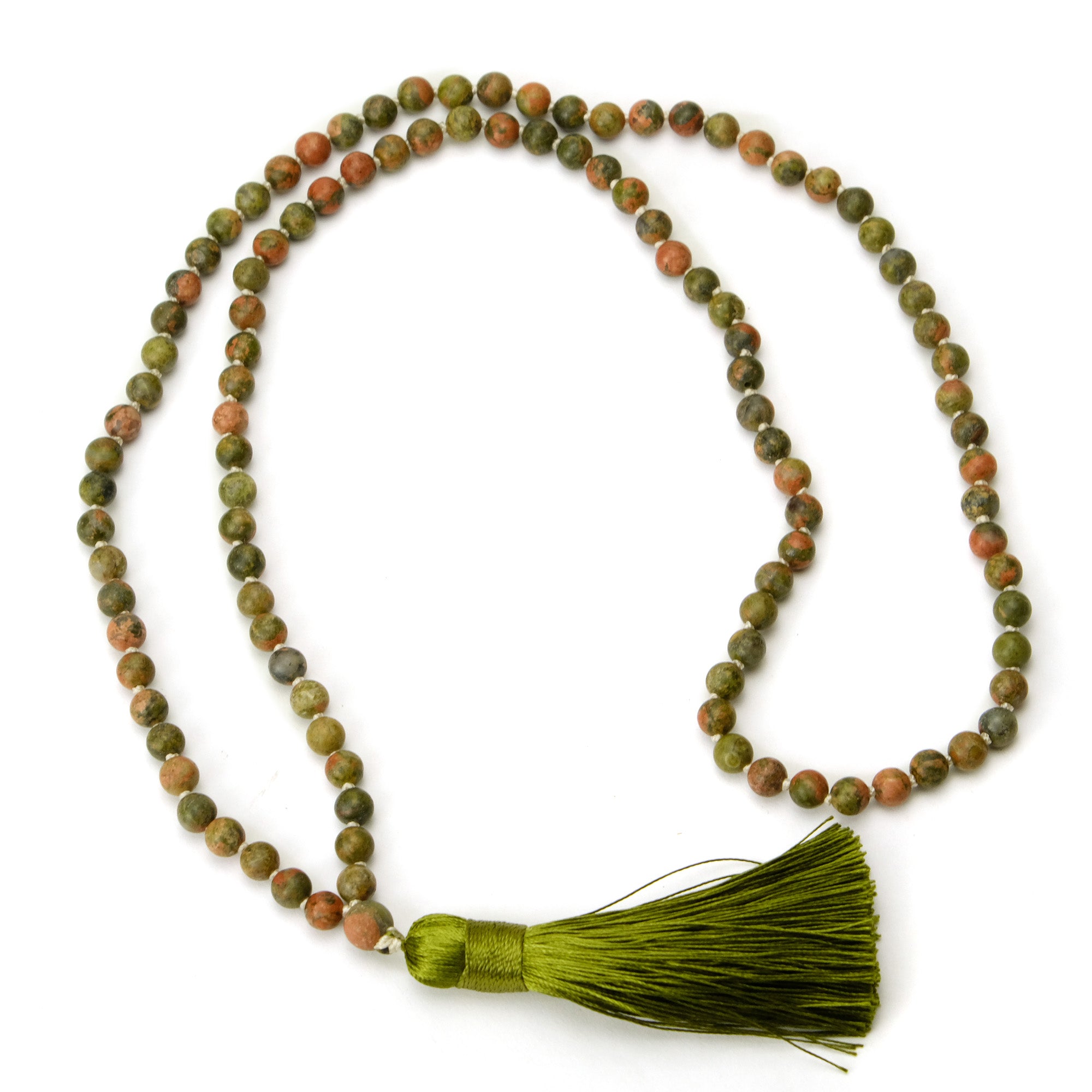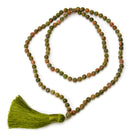 Unakite 6mm Knotted Mala with Silk Tassel #81