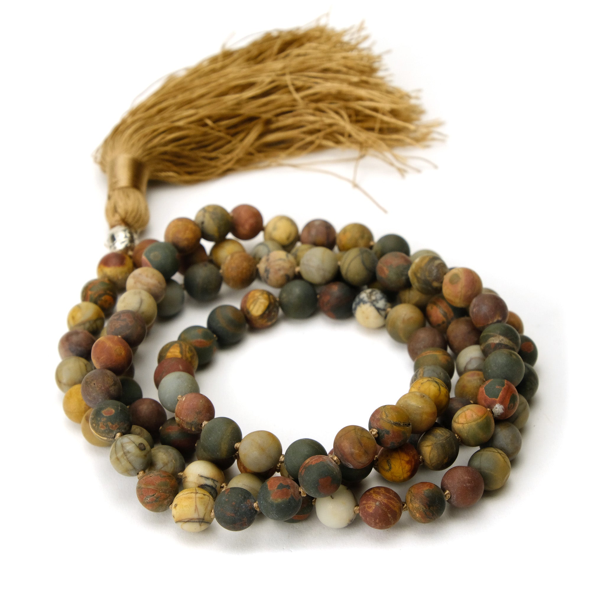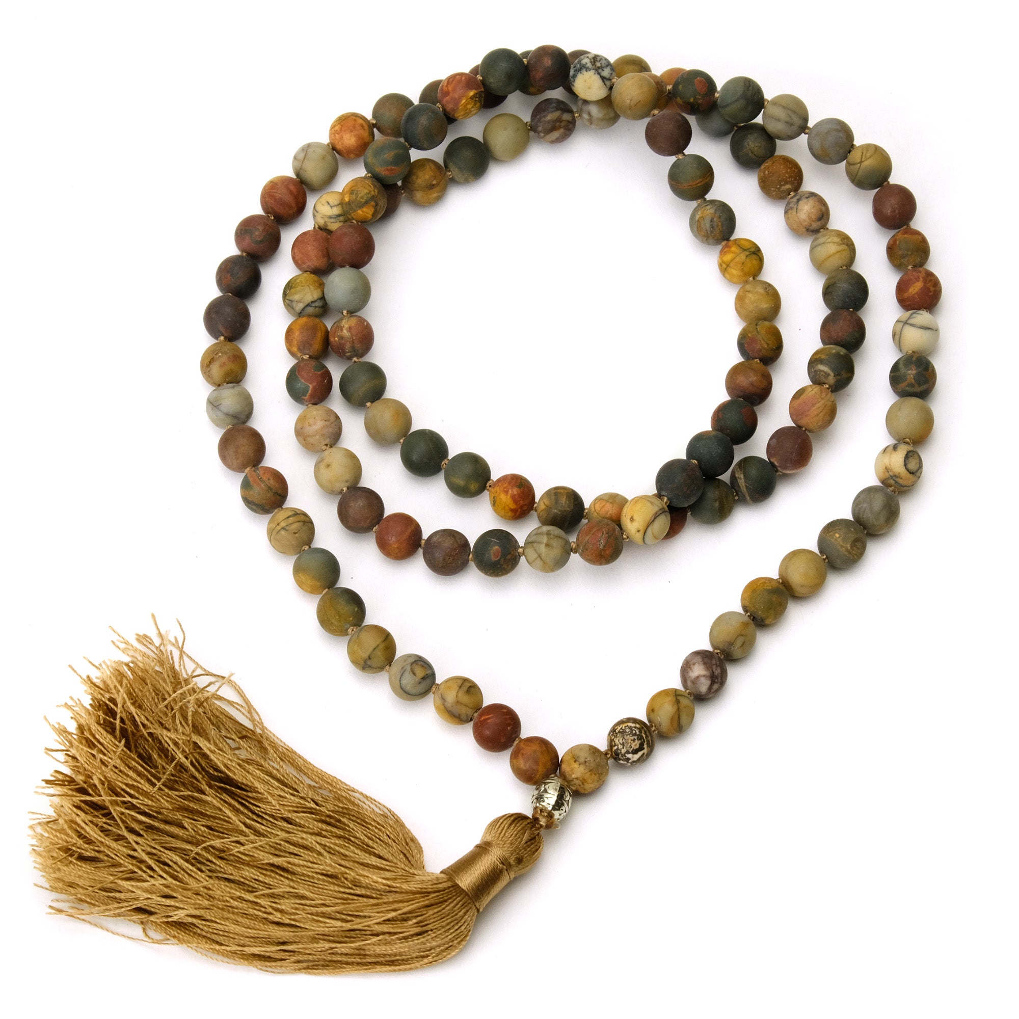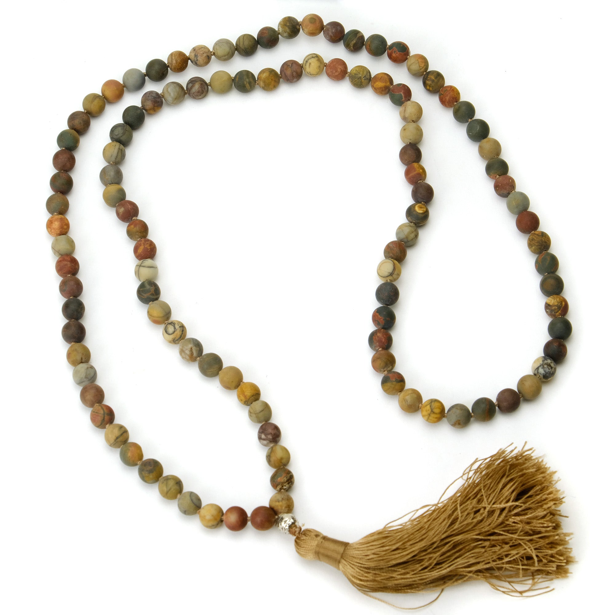 Rainforest Jasper 8mm Knotted Mala with Silk Tassel #83