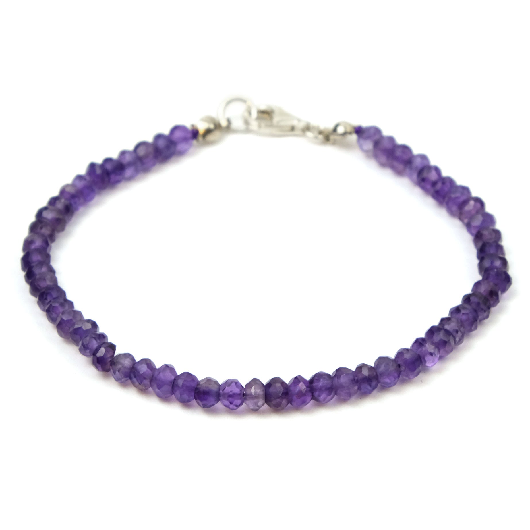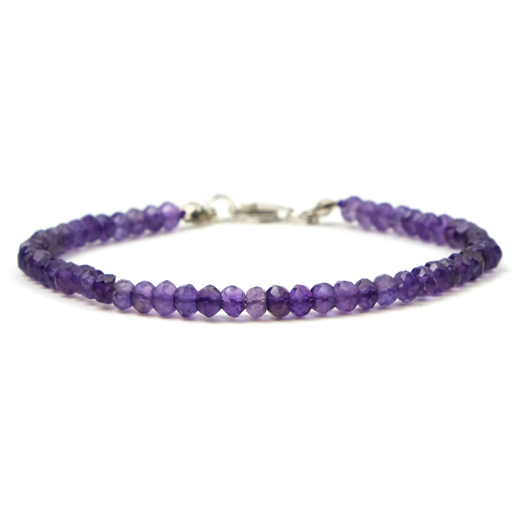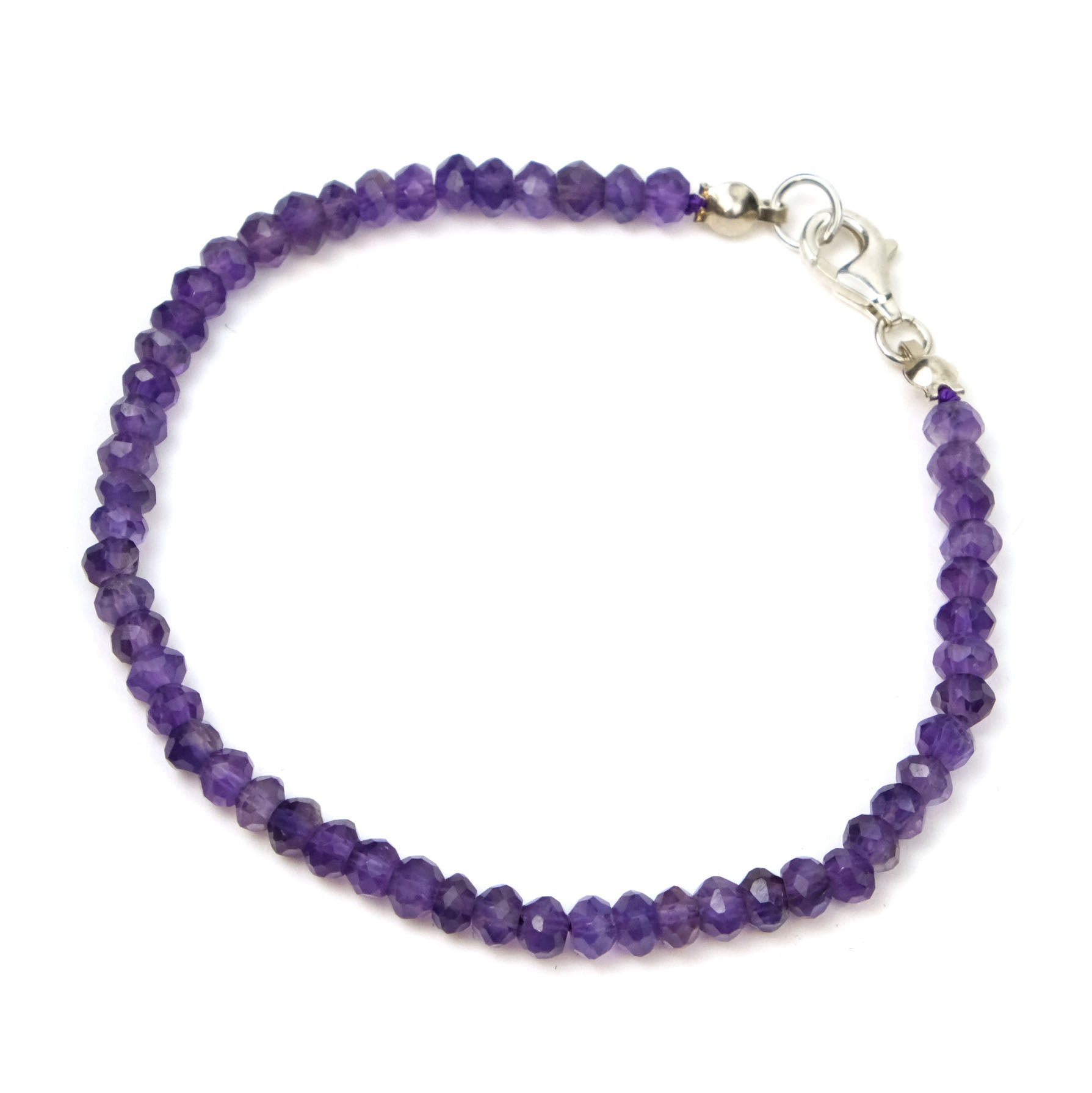 Amethyst 3.5mm Faceted Rondelle Bracelet with Sterling Silver Trigger Clasp
