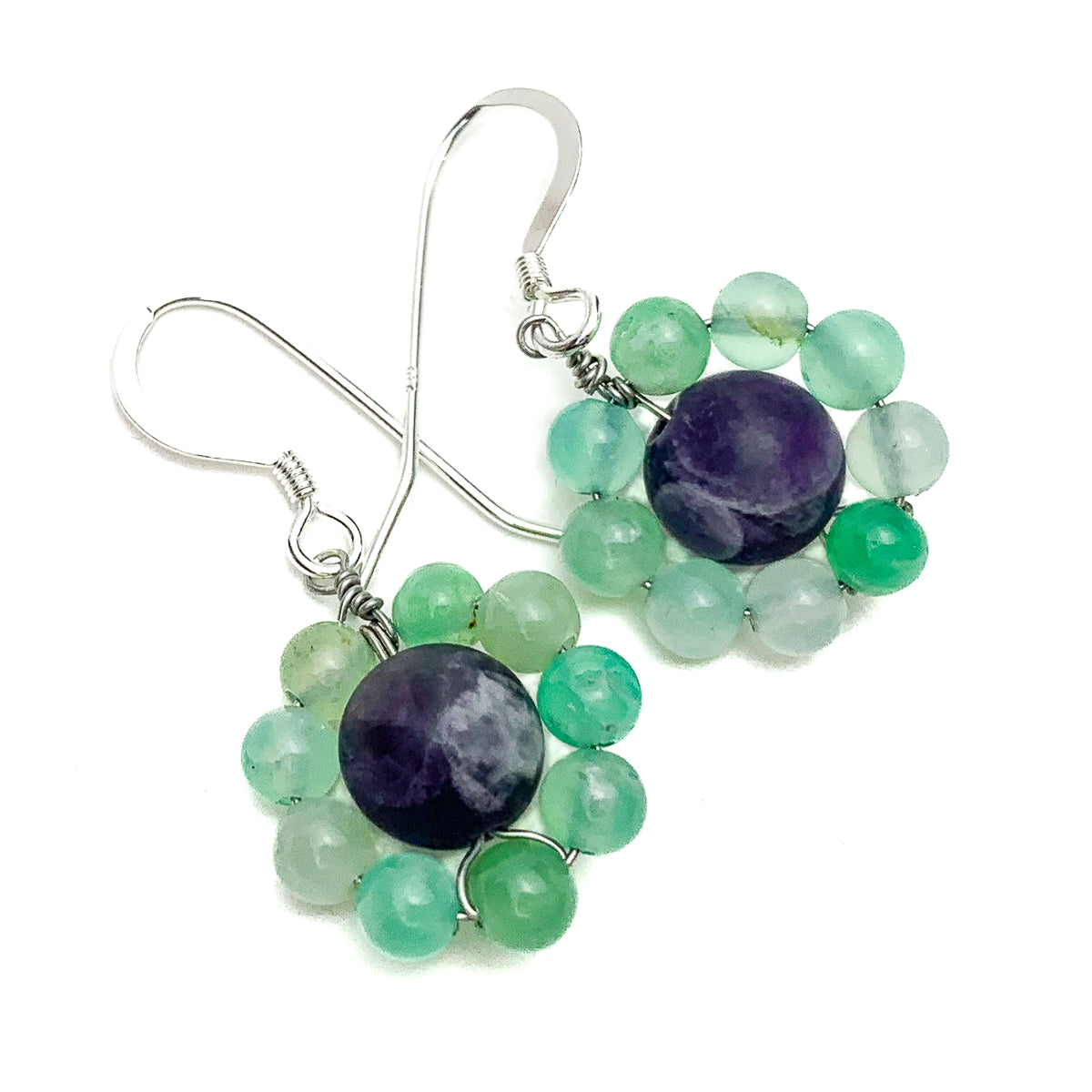 Amethyst & Chrysoprase Flower Earrings with Sterling Silver Ear Wires