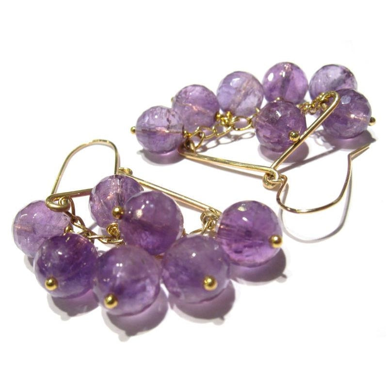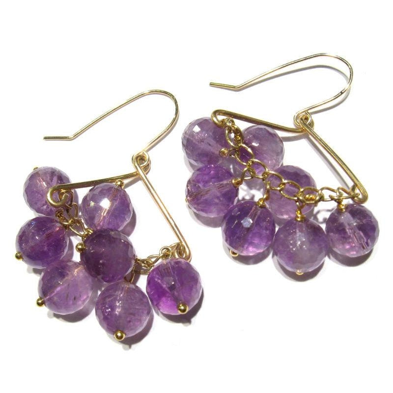 Faceted Amethyst Rounds on Gold Filled Wire & Chain Earrings