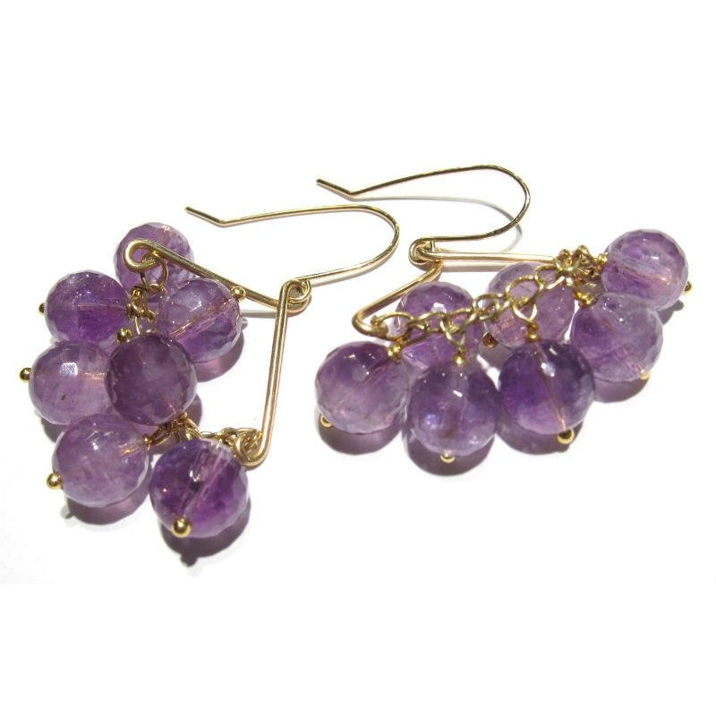 • Faceted Amethyst Rounds on Gold Filled Wire & Chain Earrings