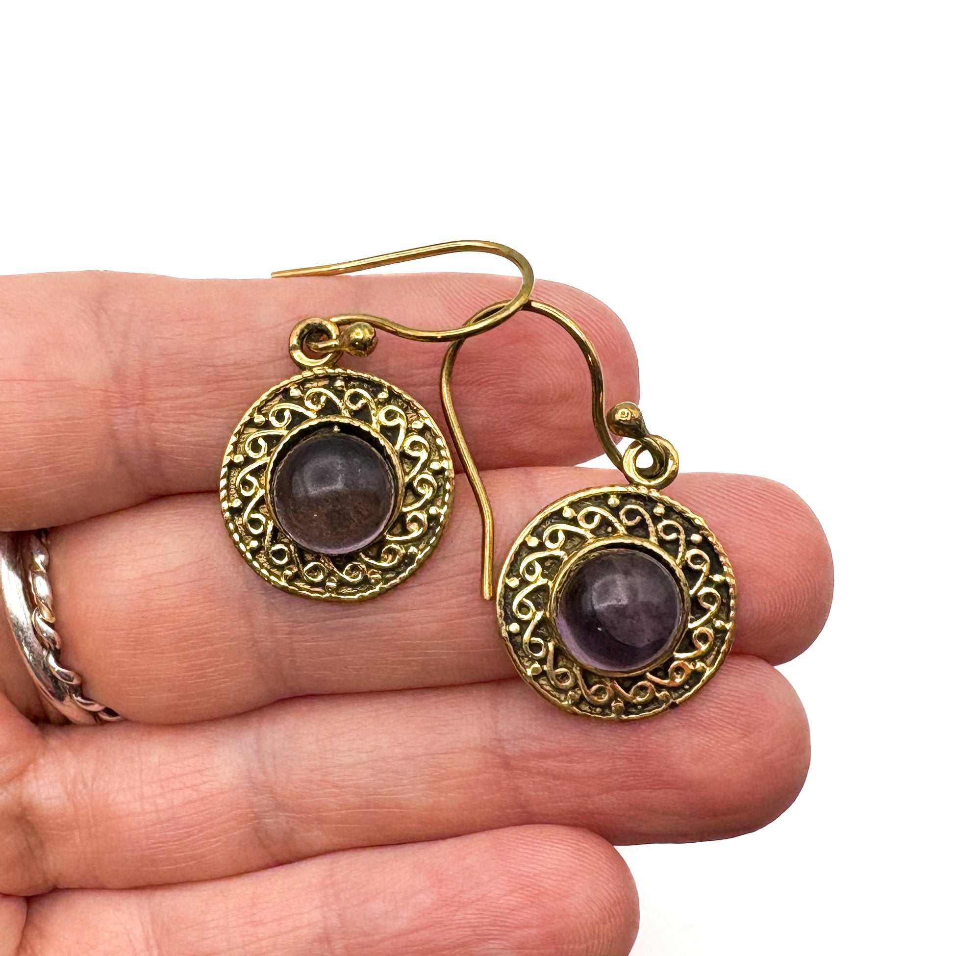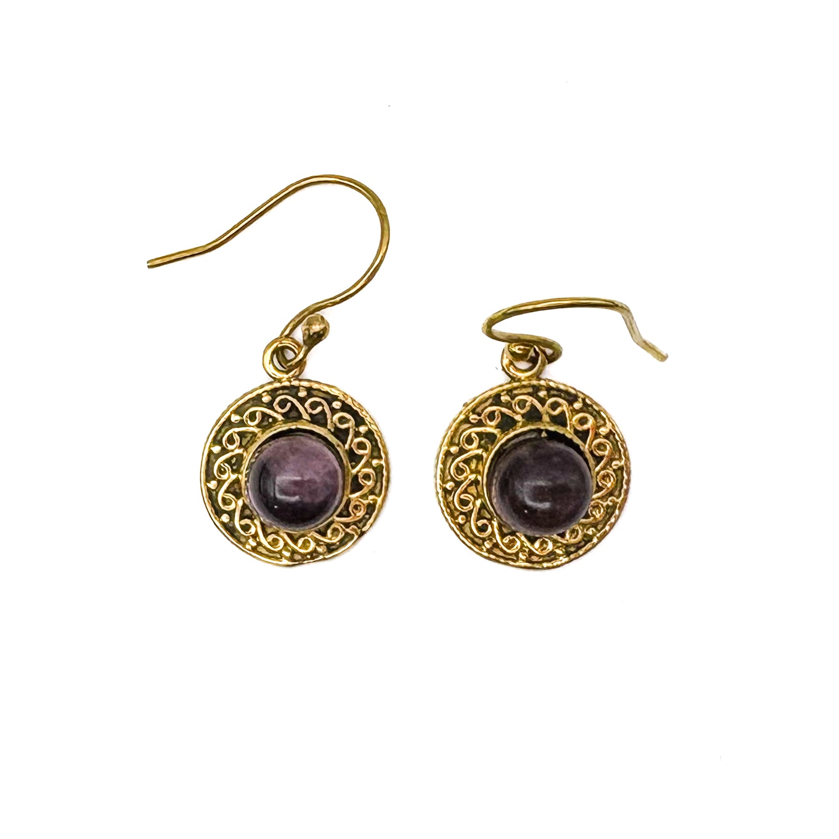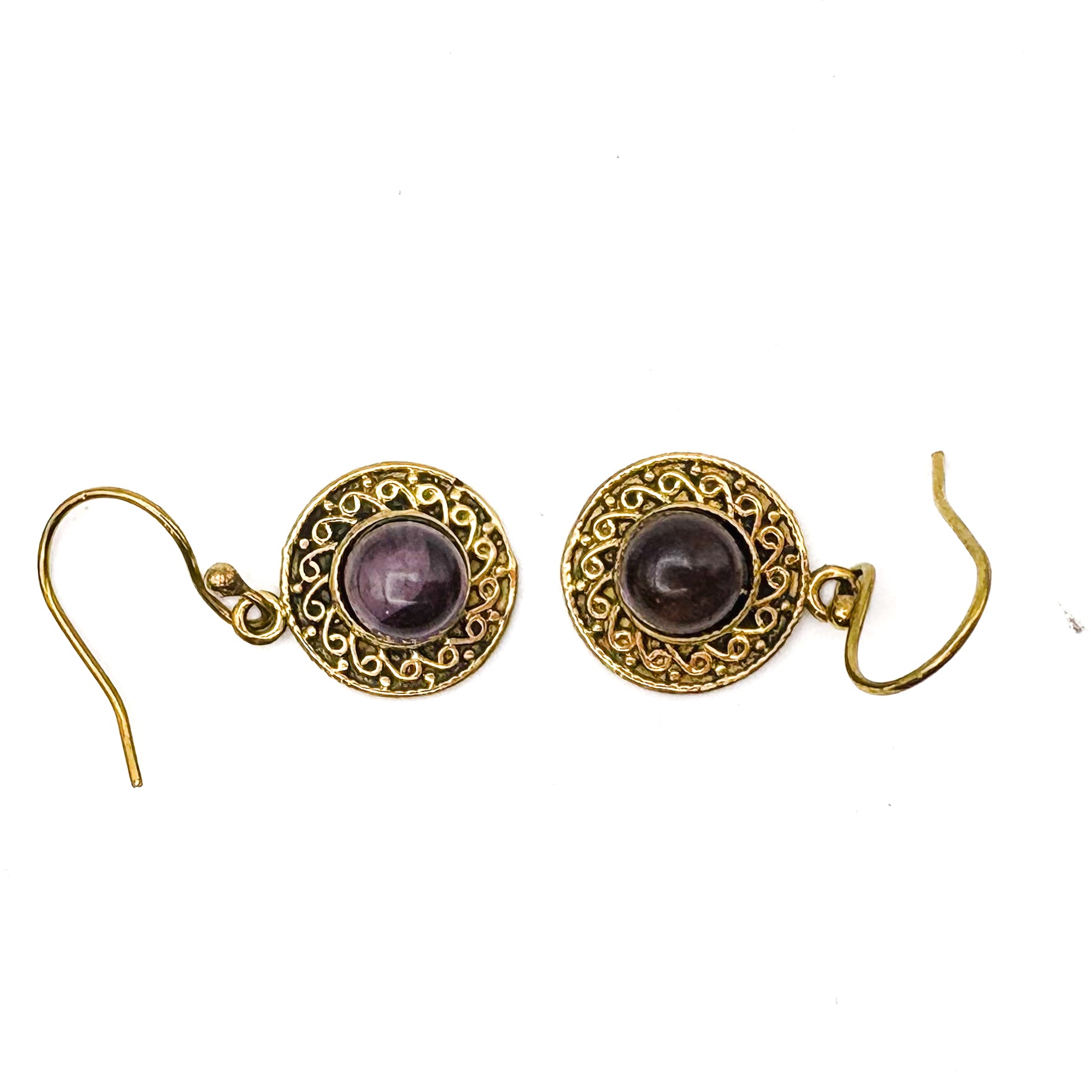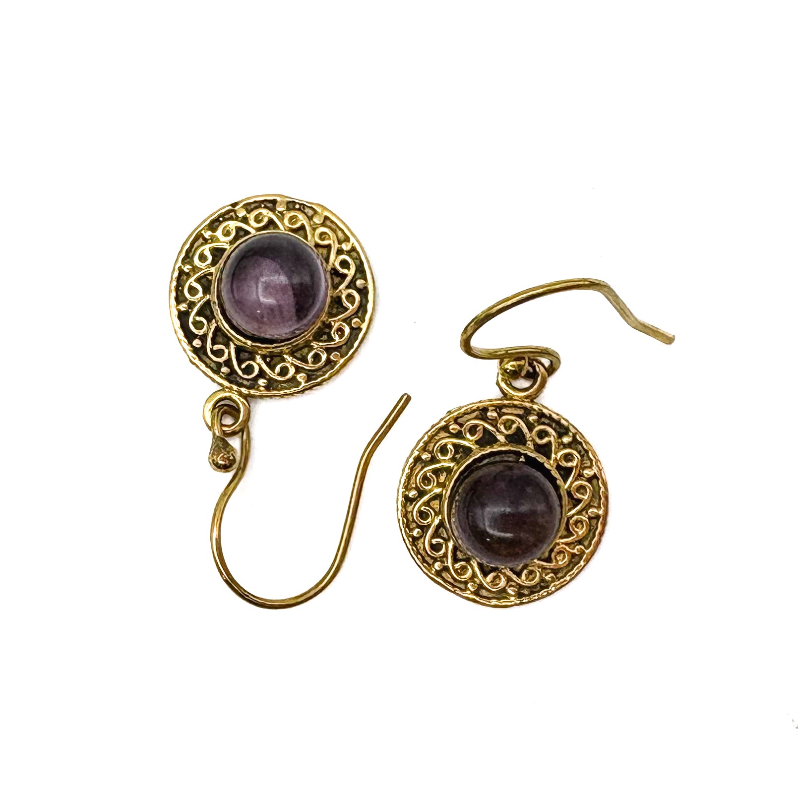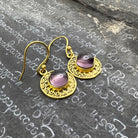 Amethyst Round & Round Brass Earrings