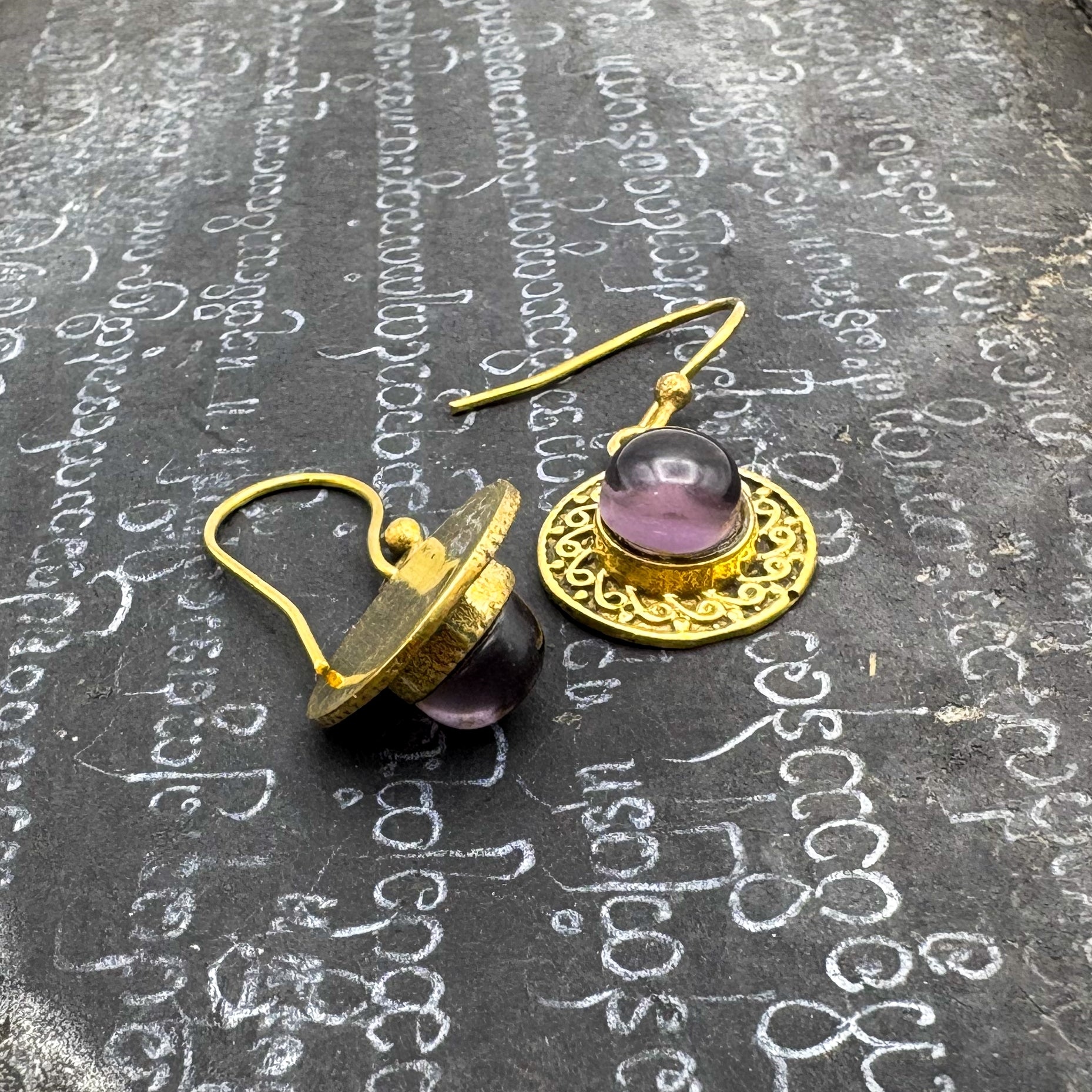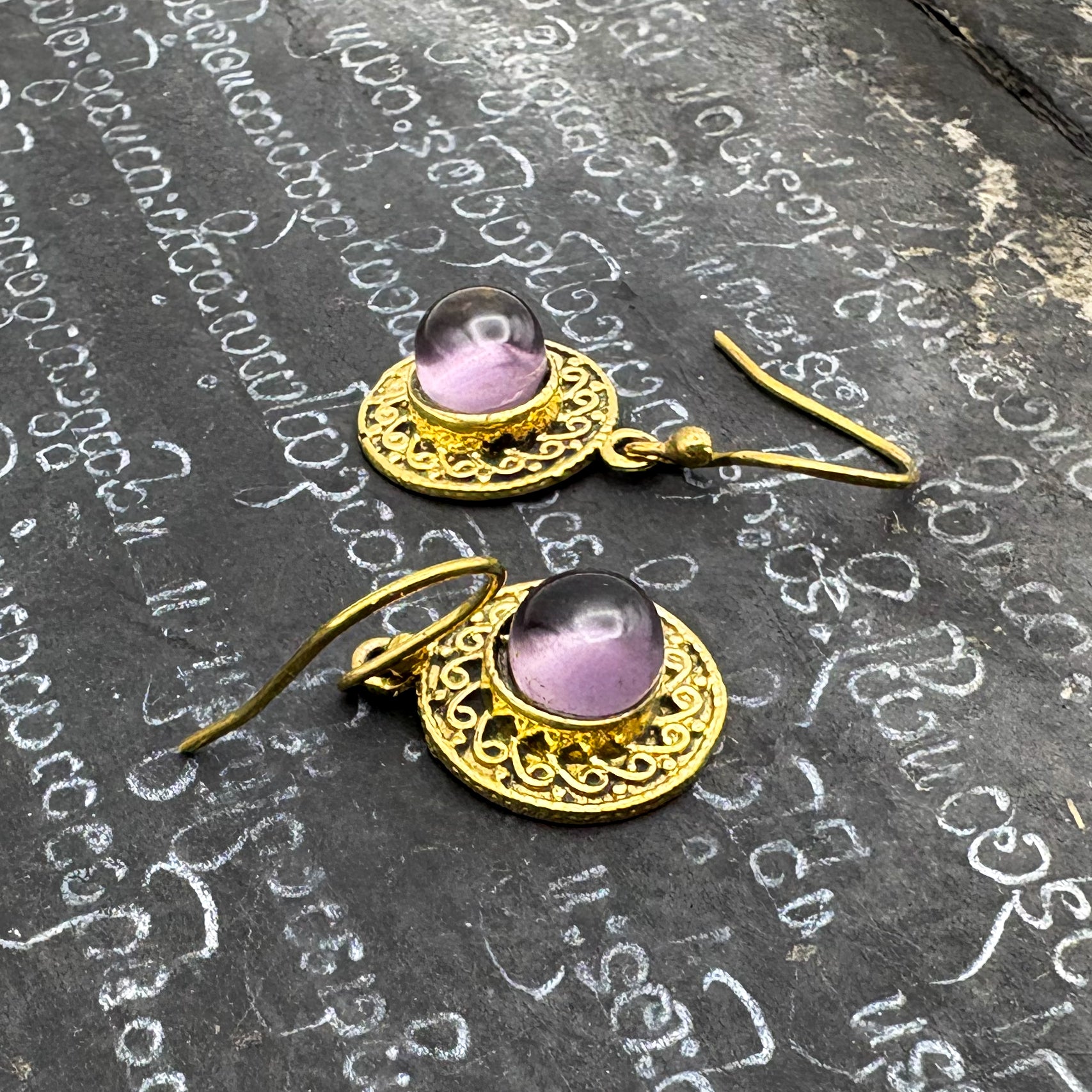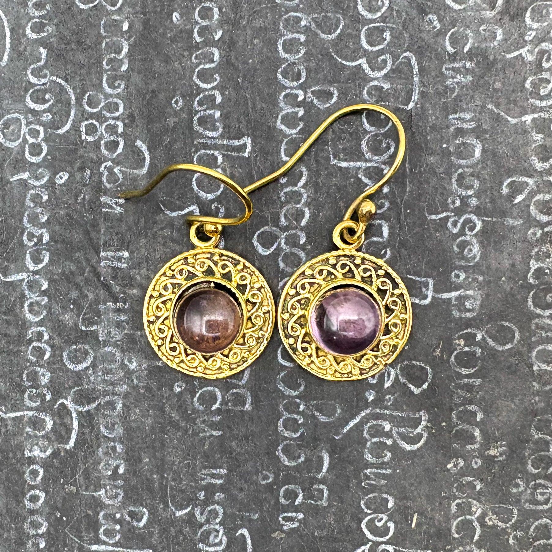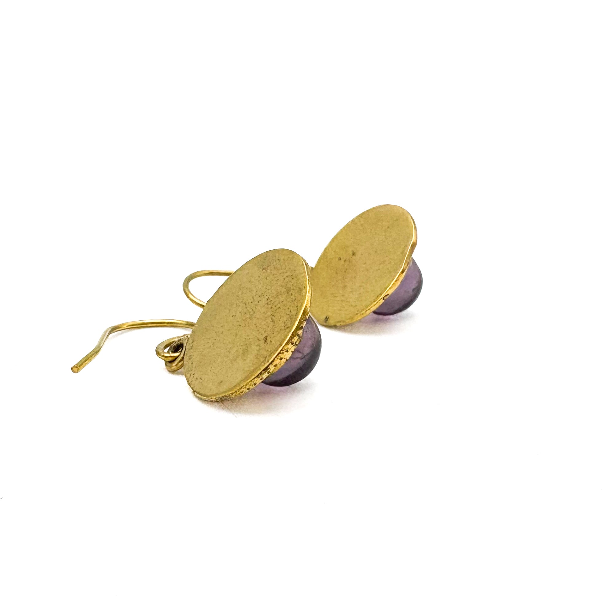 Amethyst Round & Round Brass Earrings
