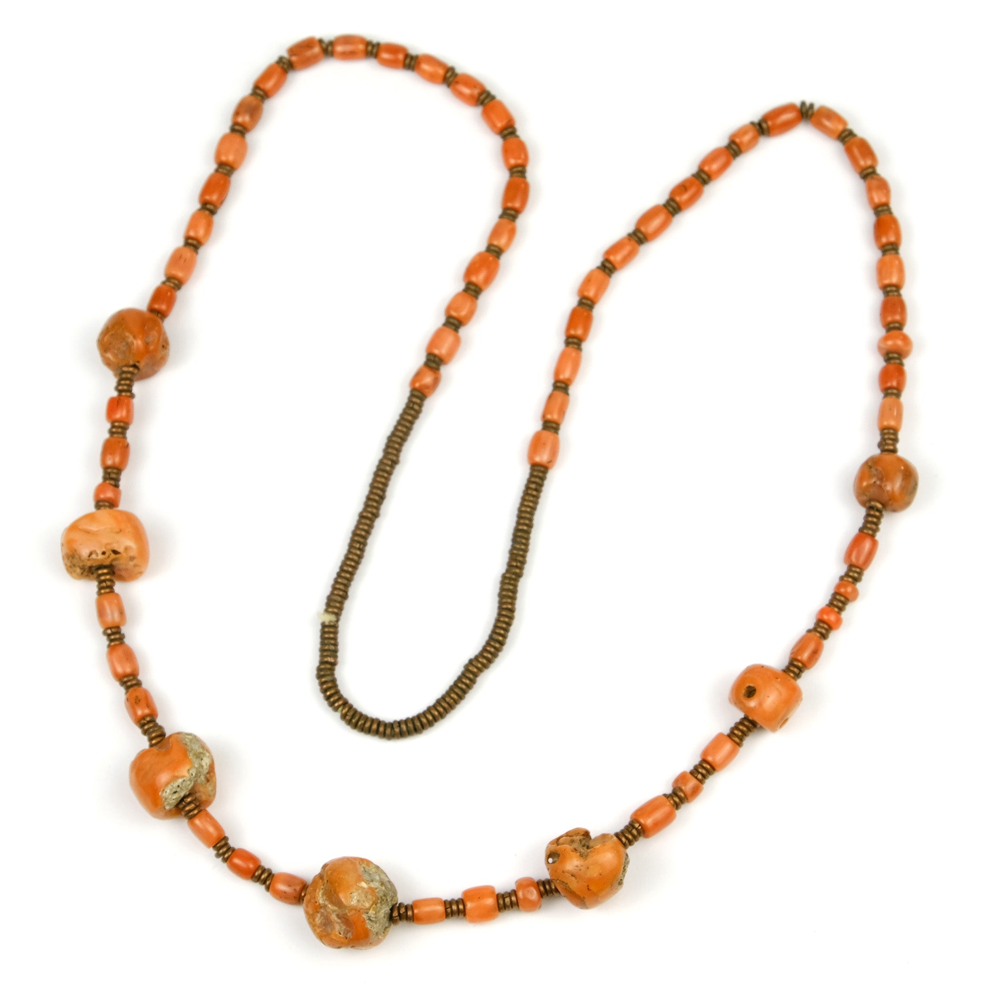 Antique Coral Beads with Copper Spacer Beads Necklace