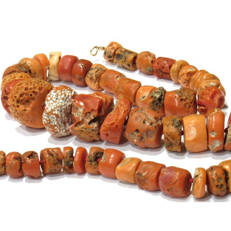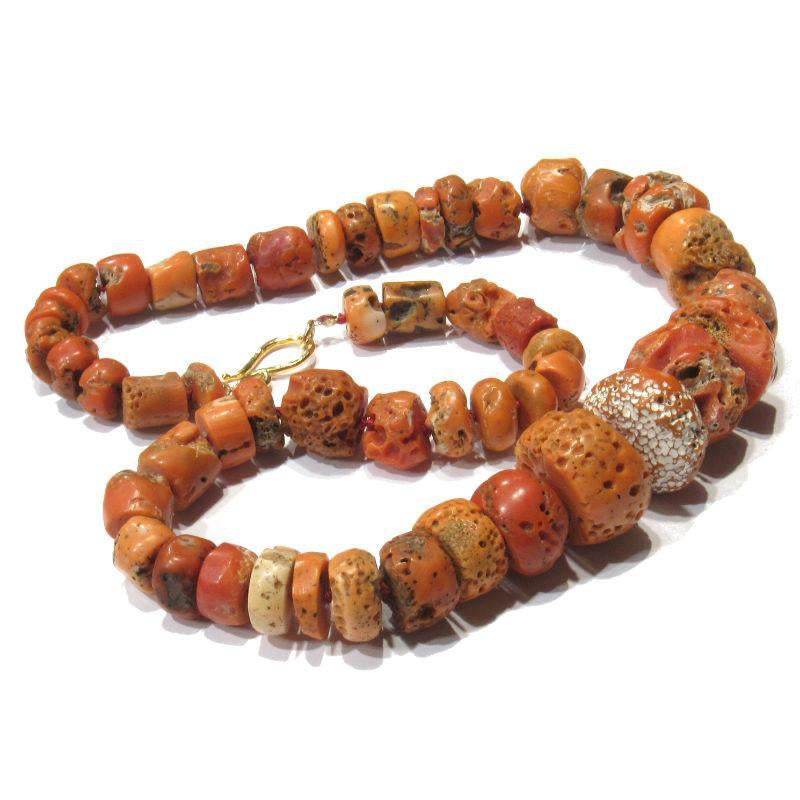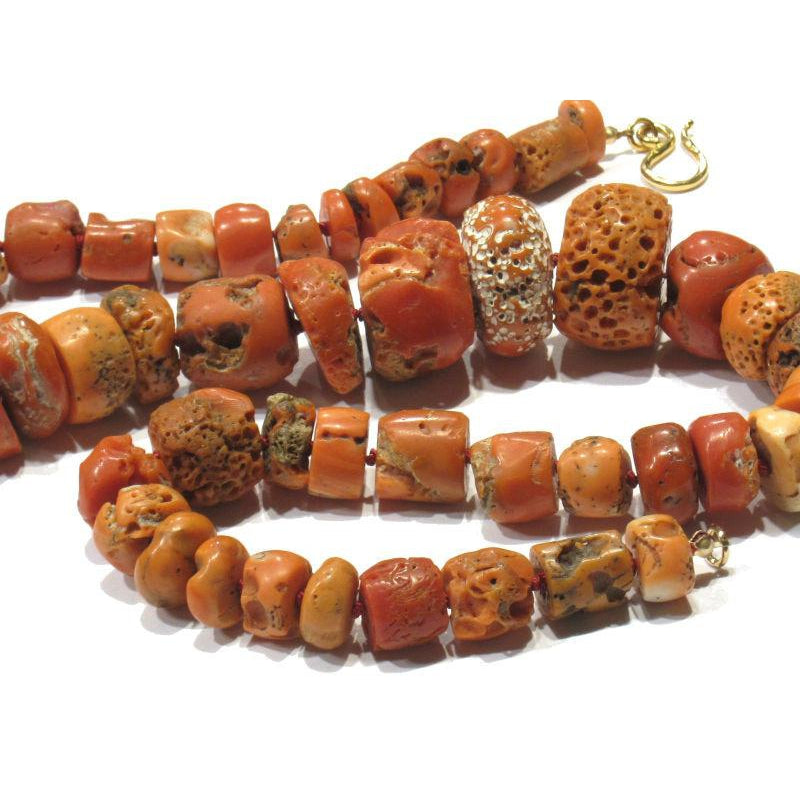 Antique Coral Necklace with Gold Plated J-Hook Clasp