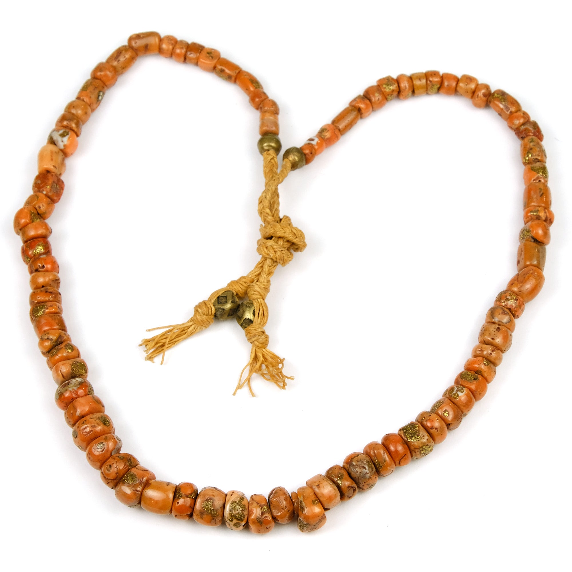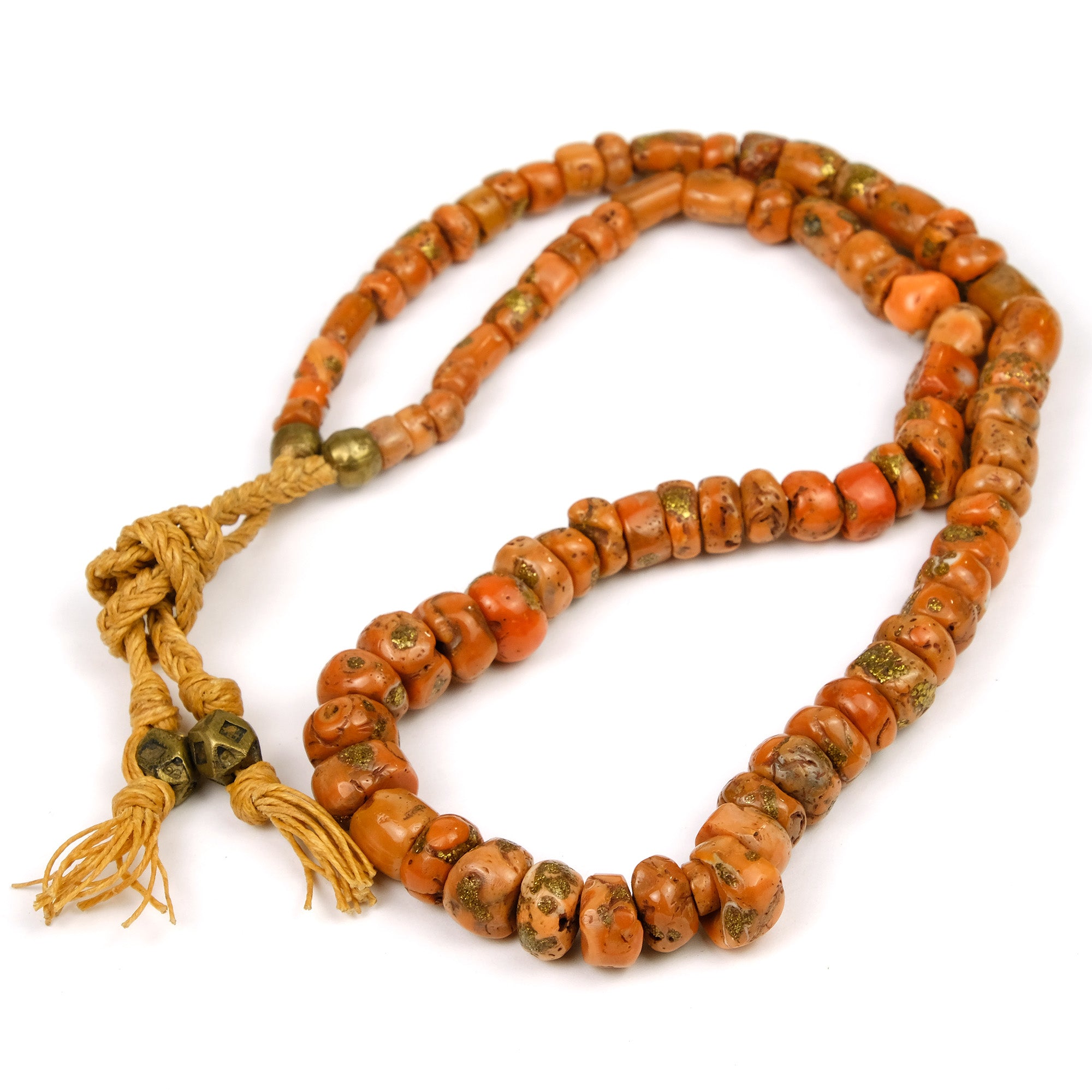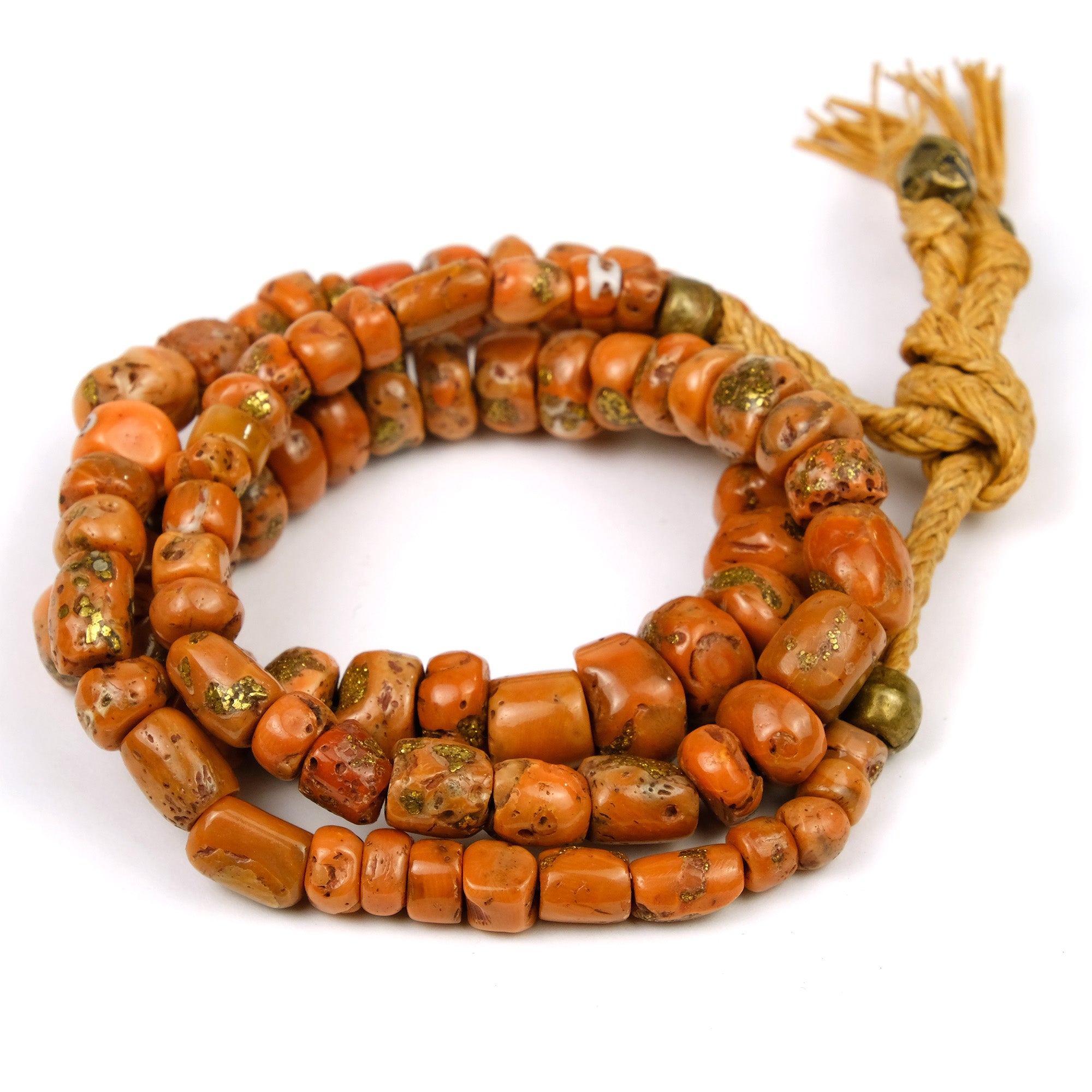 Antique Coral with Brass Inlaid Strand From Nepal #1