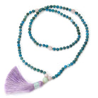 Apatite and Morganite 6mm Knotted Mala with Silk Tassel #99