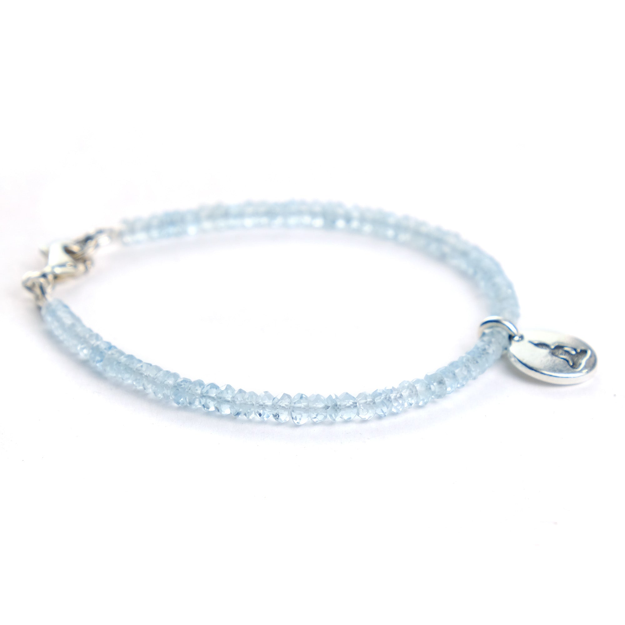 Aquamarine and Buddha Charm Bracelet with Sterling Silver Trigger Clasp