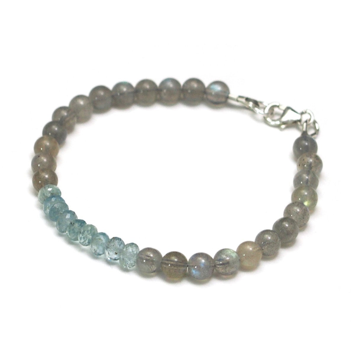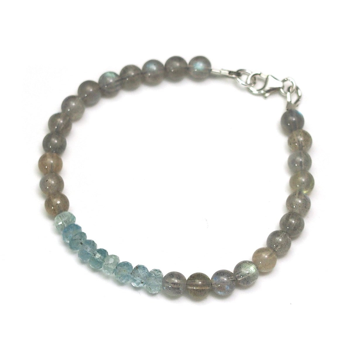 Aquamarine and Labradorite Bracelet with Sterling Silver Trigger Clasp