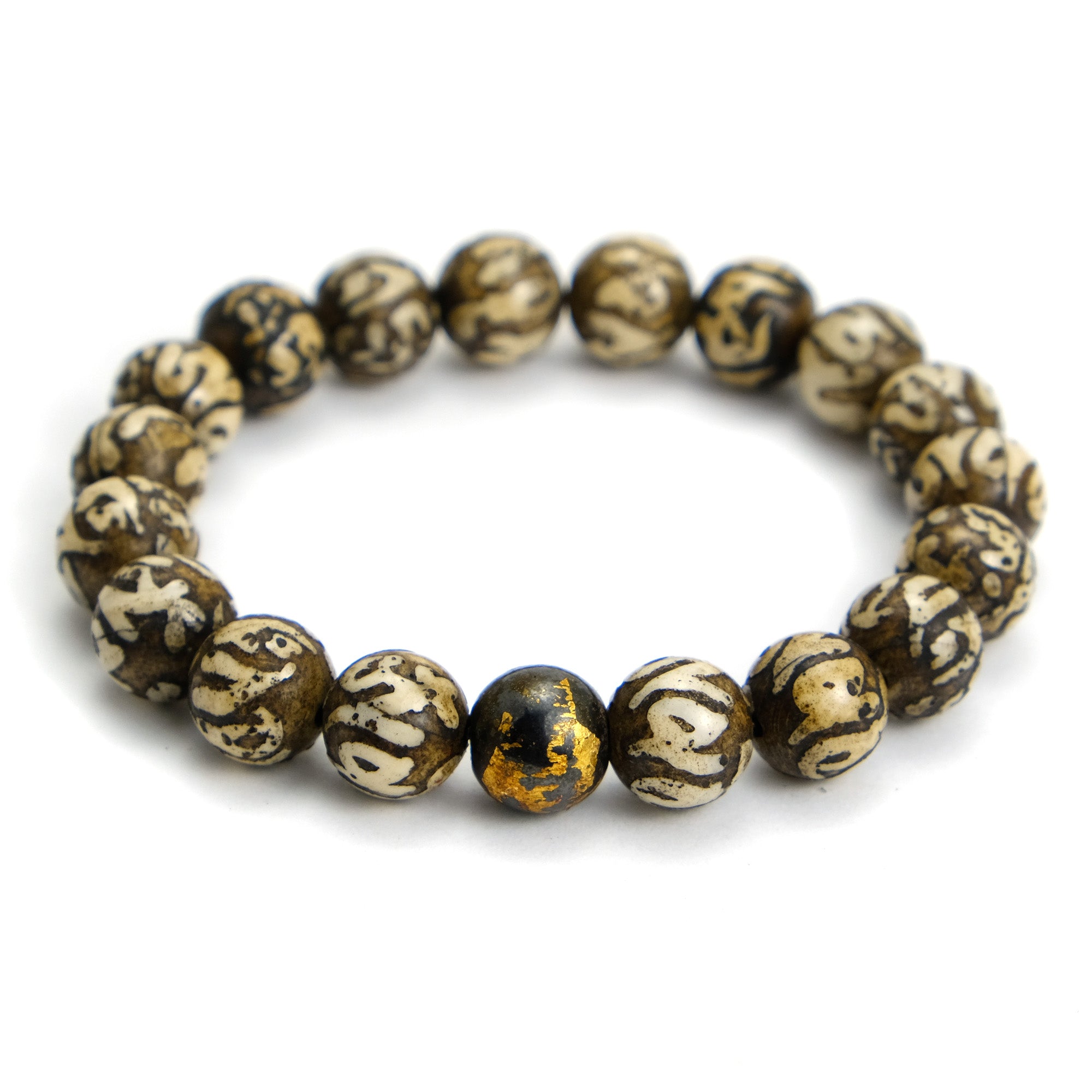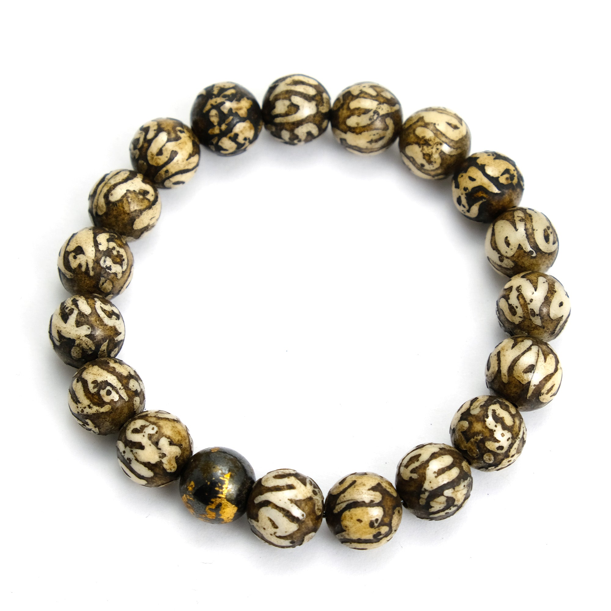Arca Shell with Etched Om Mani Padme Om Mantra 10mm Rounds Stretch Bracelet