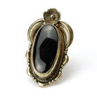 Black Onyx Smooth Oval Cabochon Sterling Silver Adjustable Ring Large