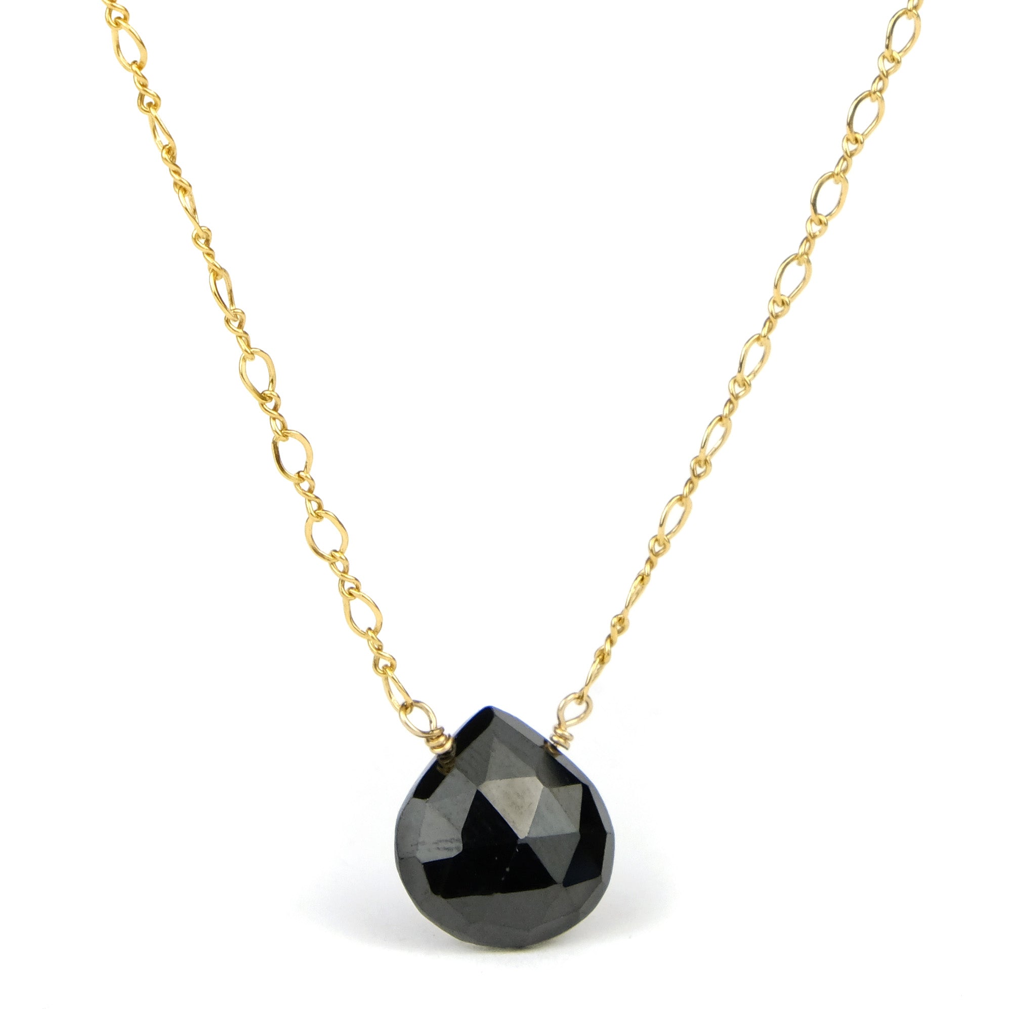 Black Spinel Necklace on Gold Filled Chain with Gold Filled Trigger Clasp