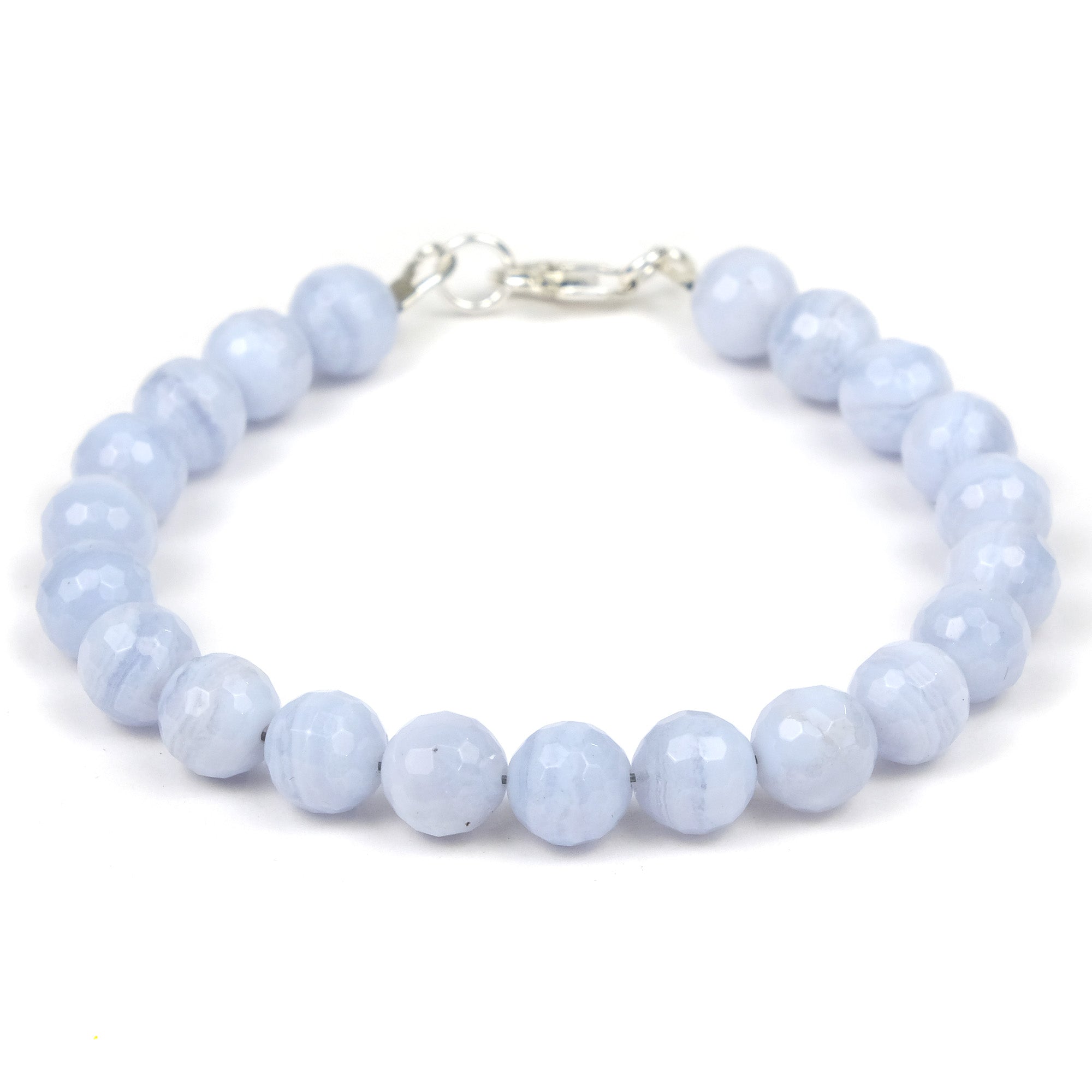Blue Lace Agate Bracelet with Sterling Silver Trigger Clasp