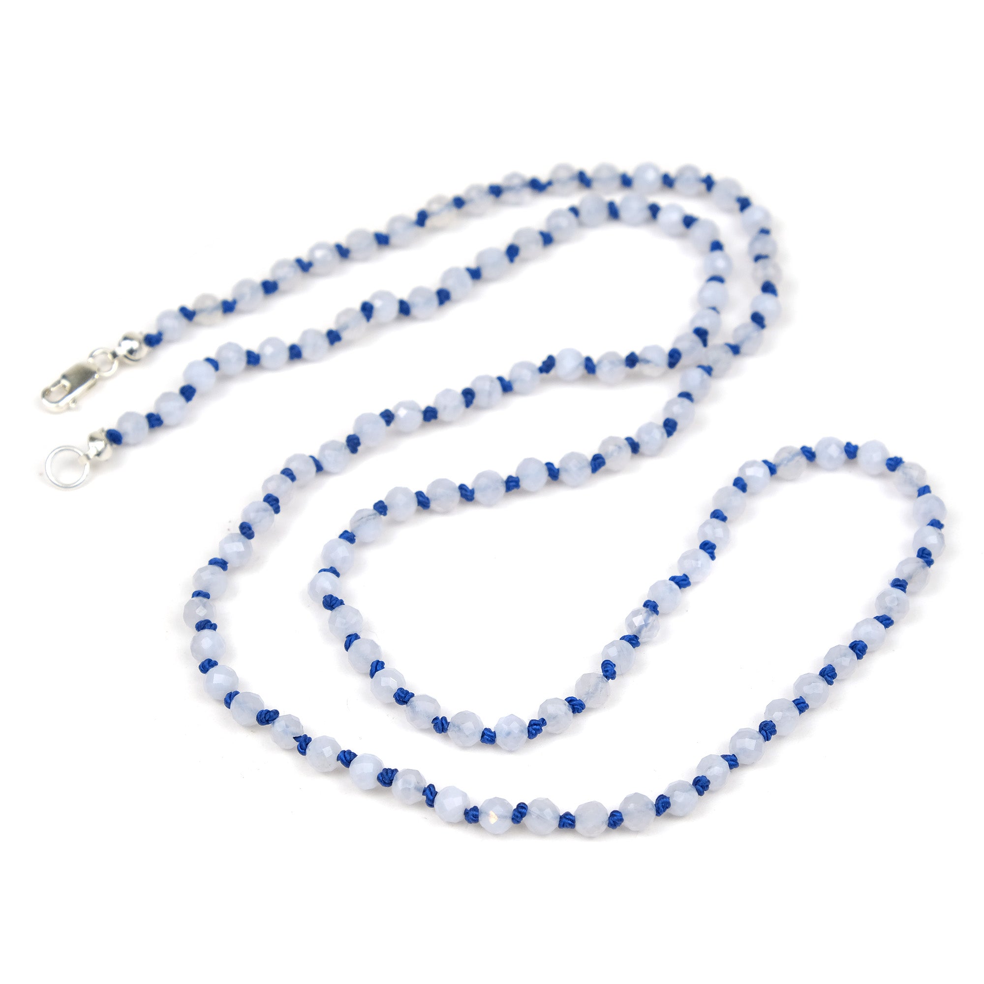 Blue Lace Agate Knotted Necklace with Sterling Silver Lobster Claw Clasp