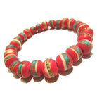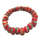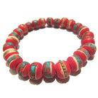 Dyed Cow Bone Inlaid with Turquoise & Coral Prayer Bead Stretch Bracelet