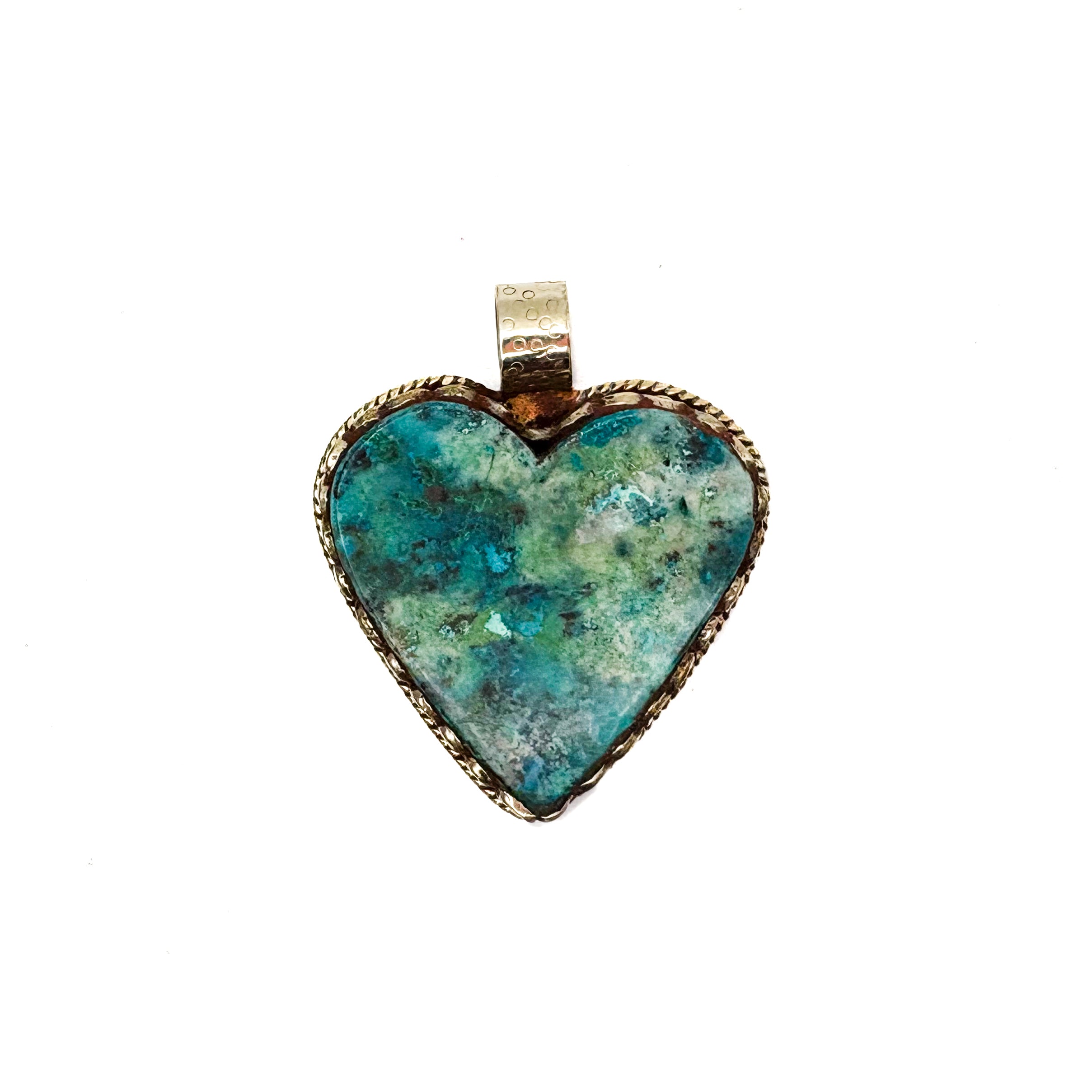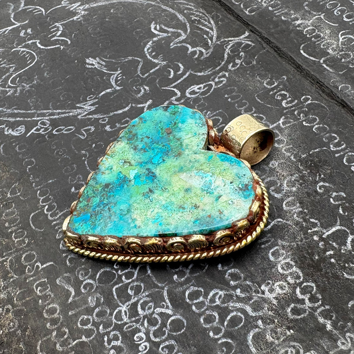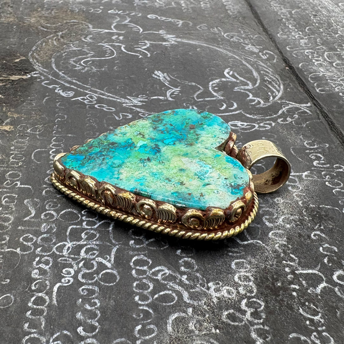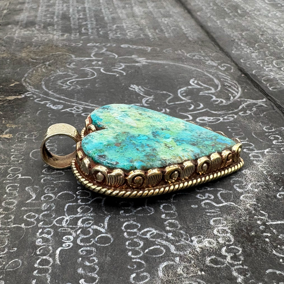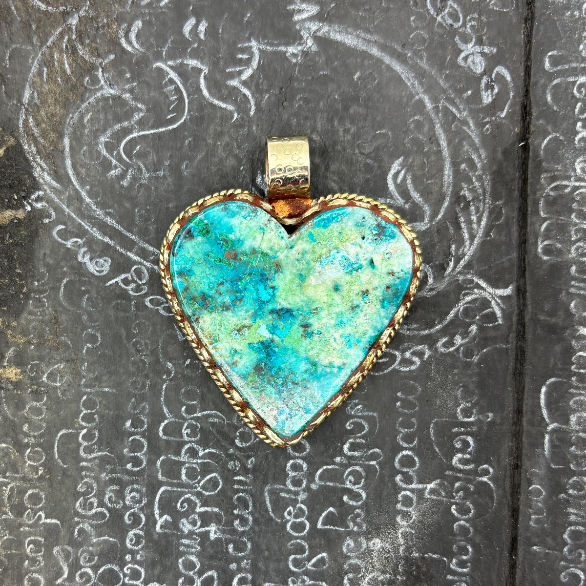 Brass & Chrysocolla Heart Pendant Amulet (A)