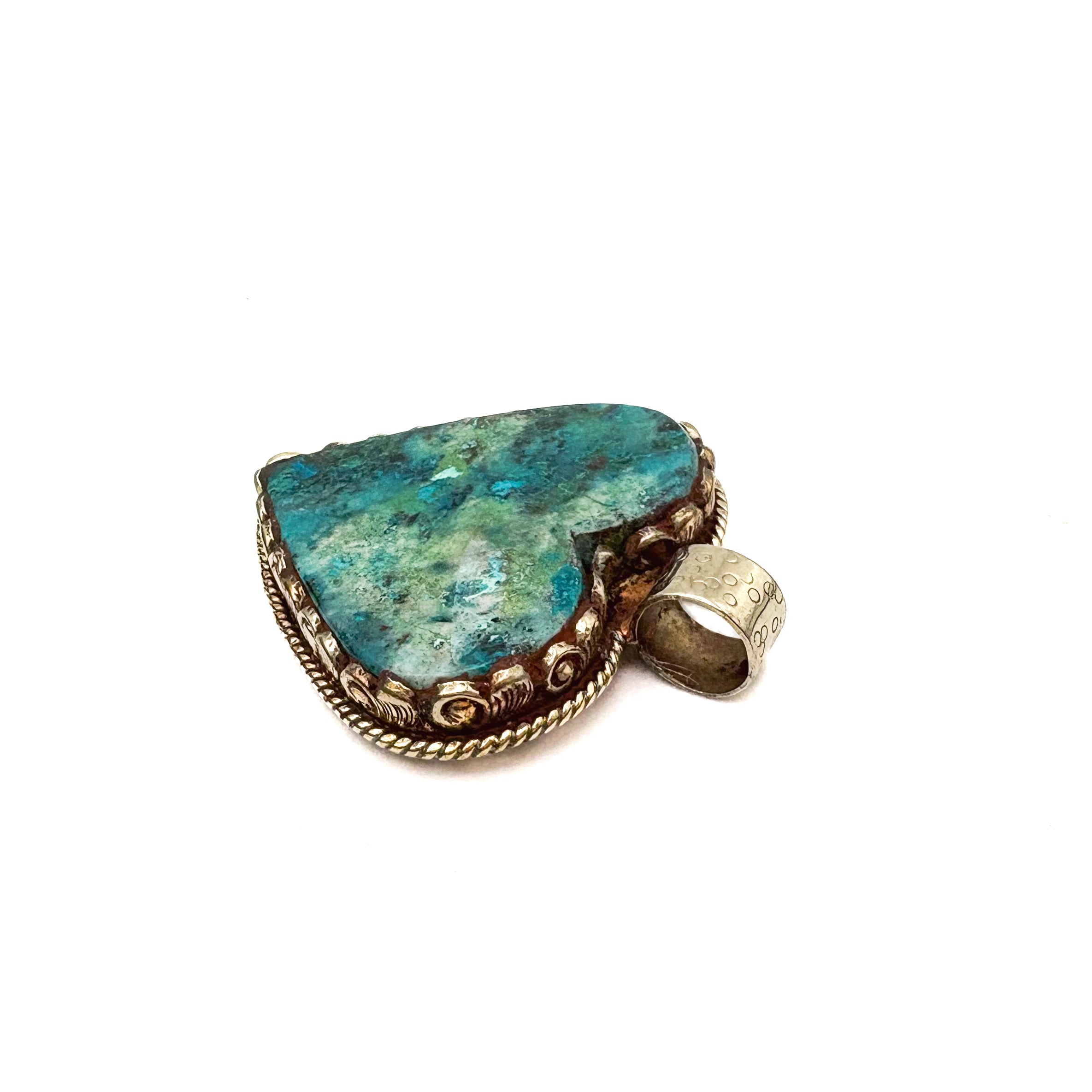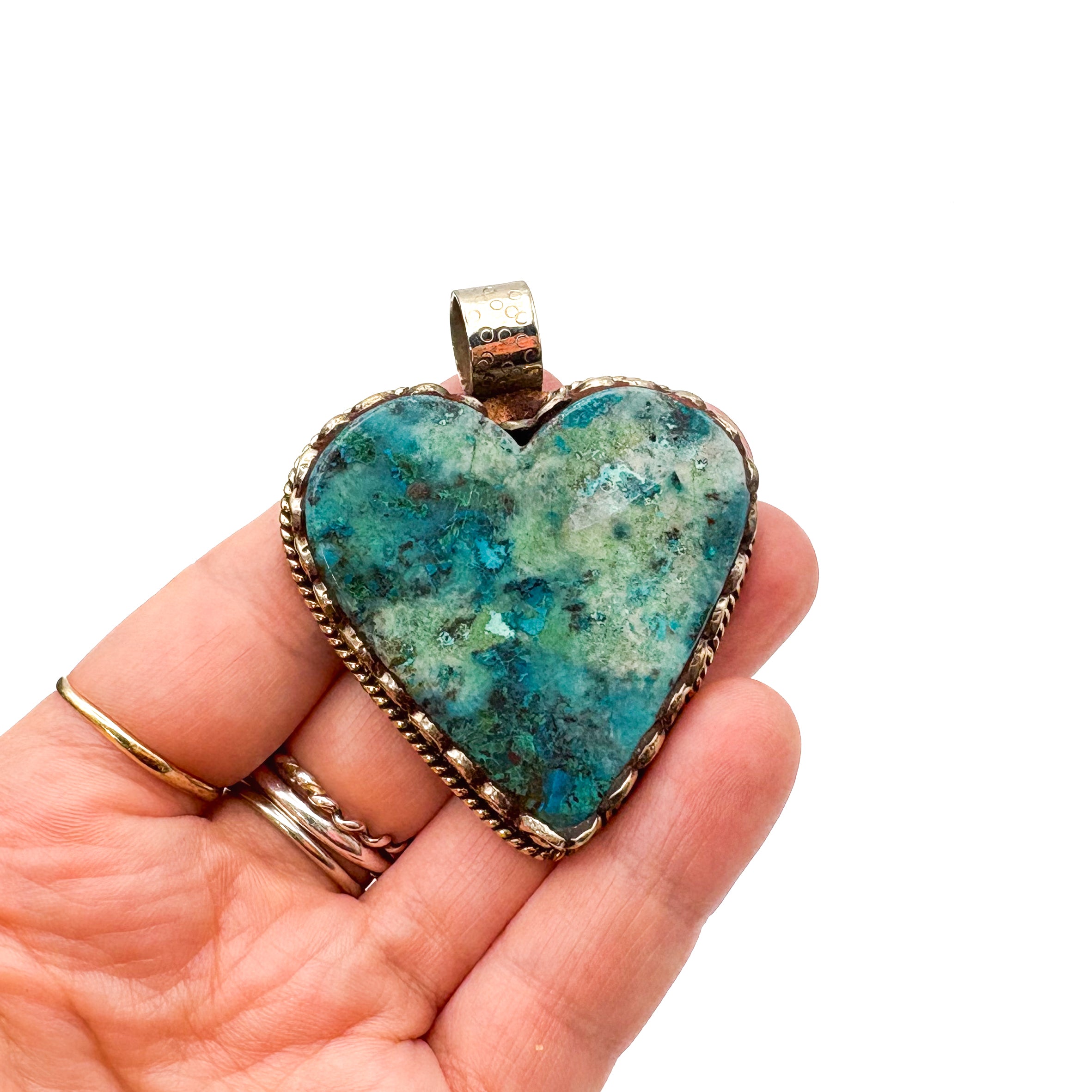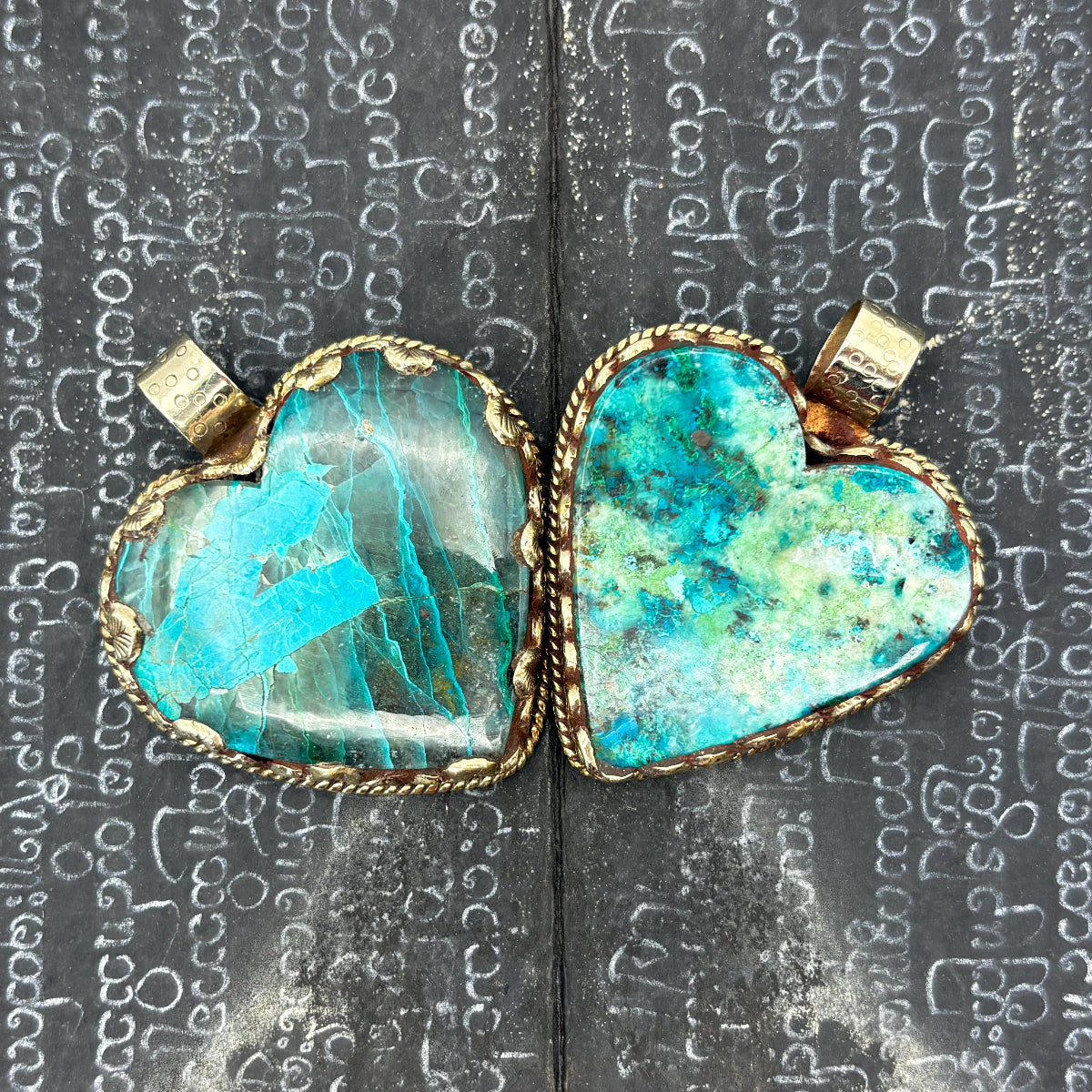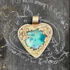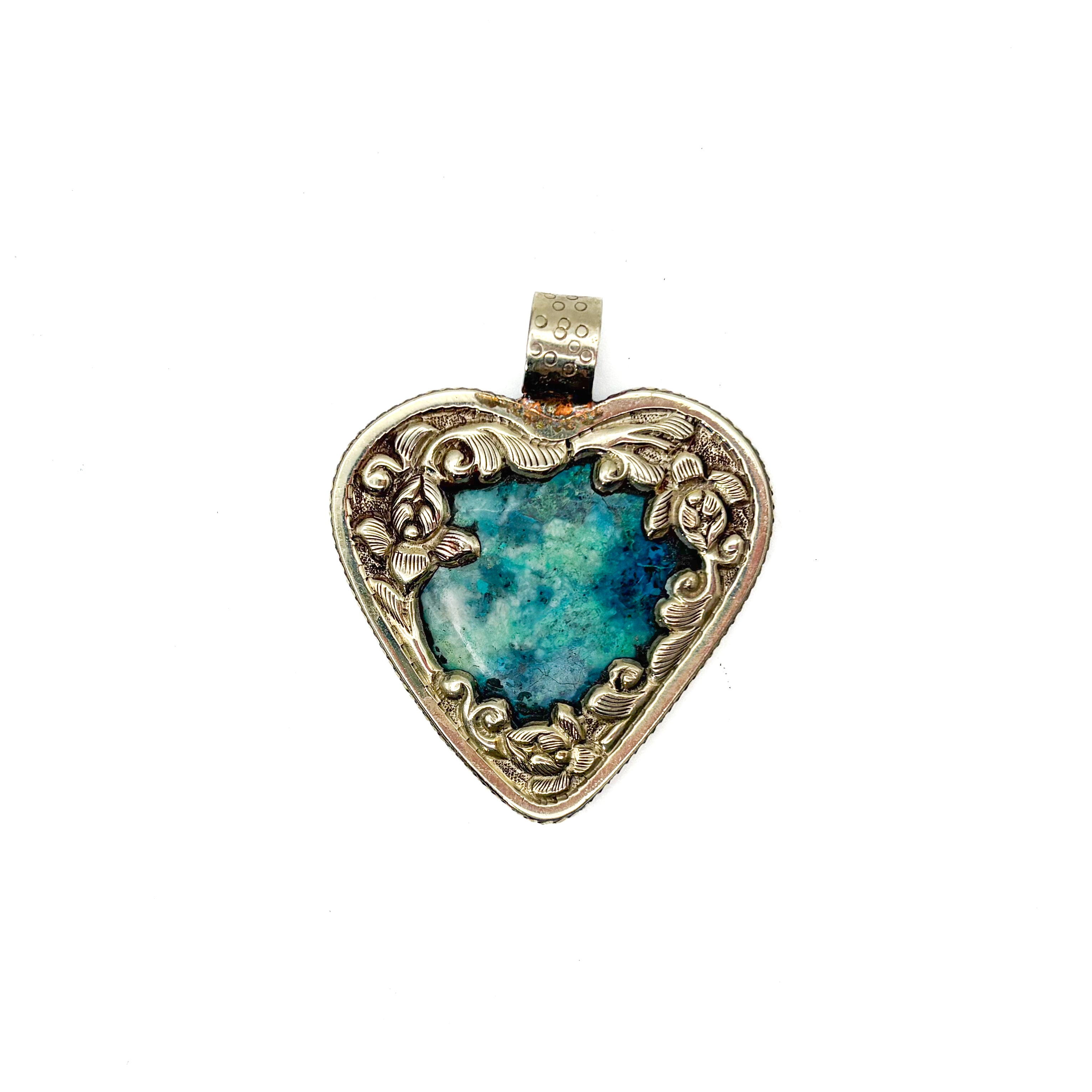 Brass & Chrysocolla Heart Pendant Amulet (A)