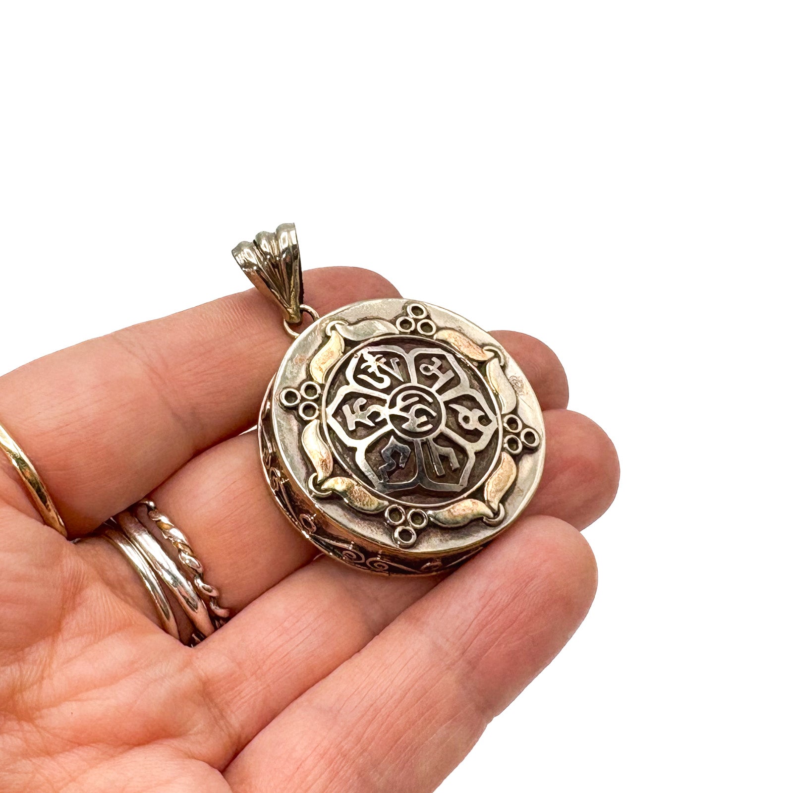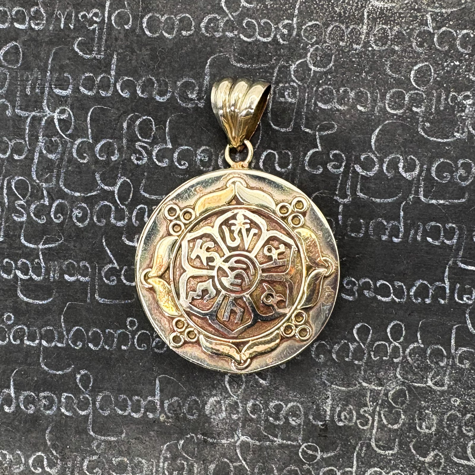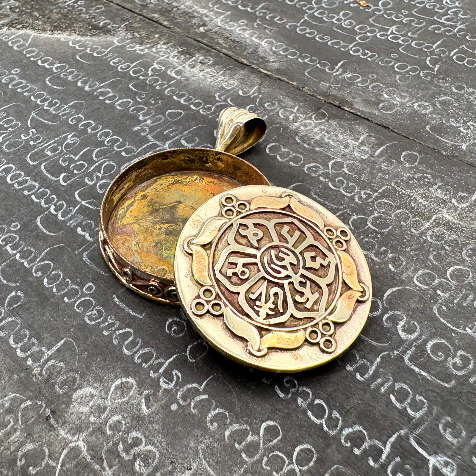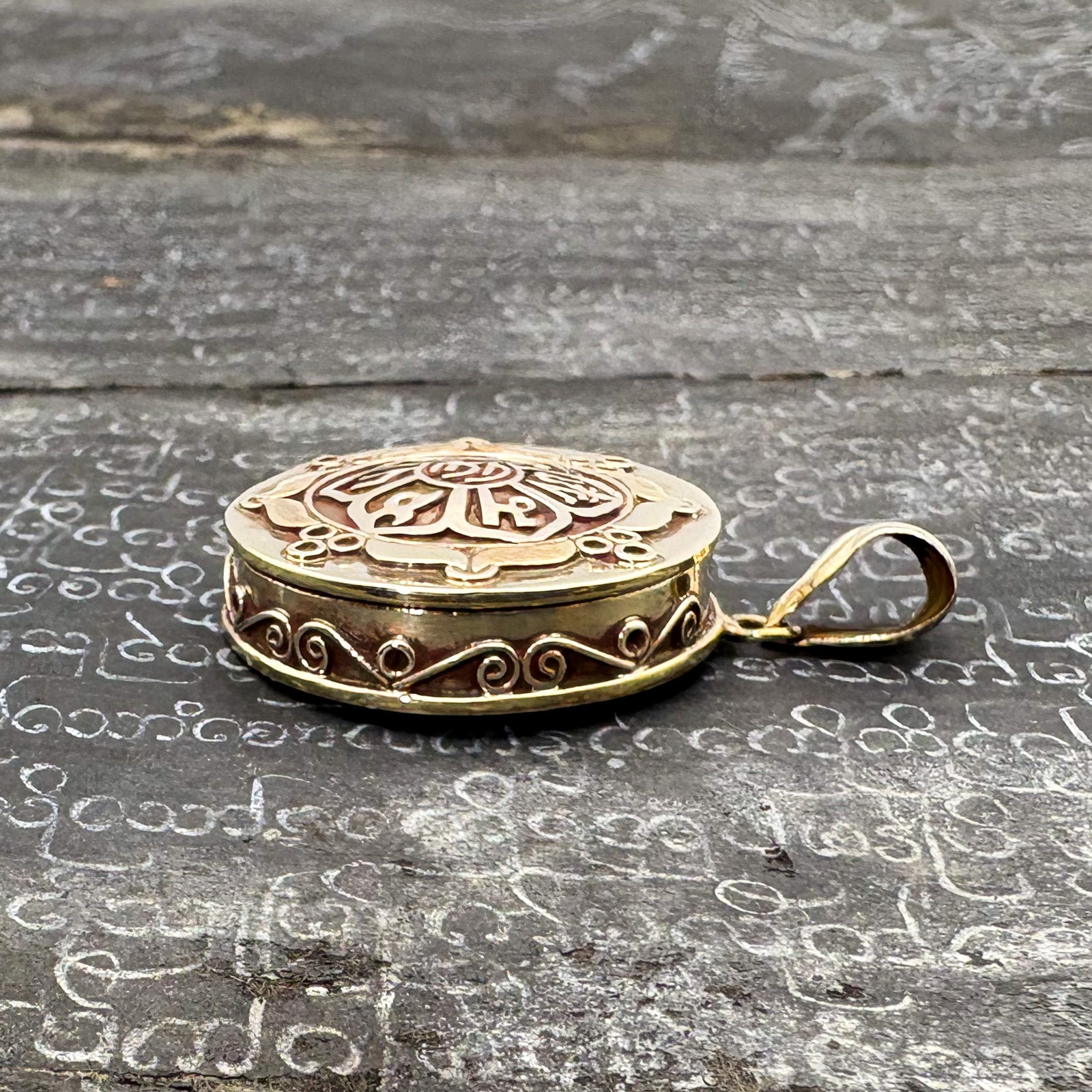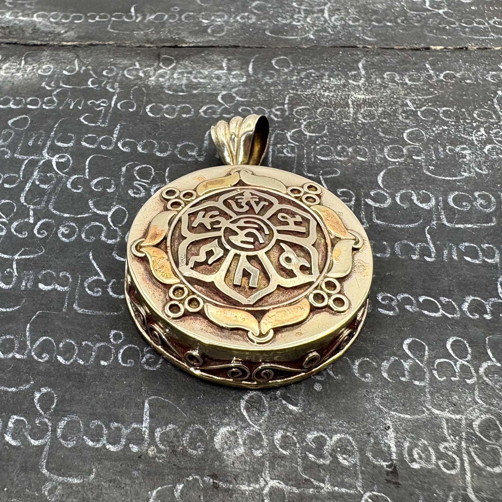 Brass Flower Ohm Gau Locket Pendant Amulet