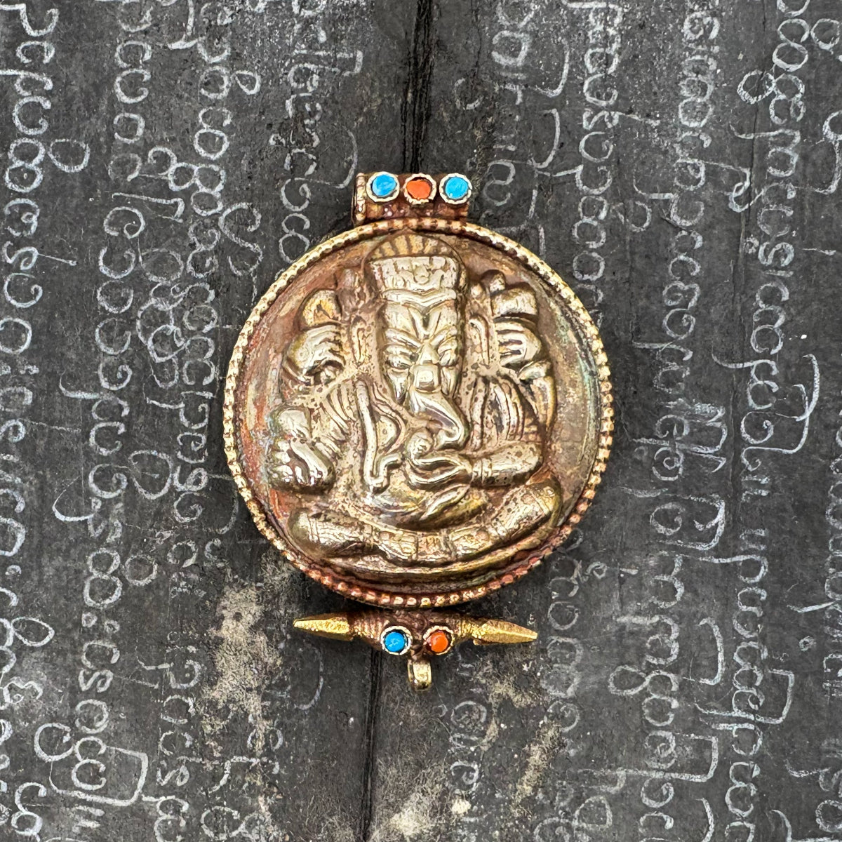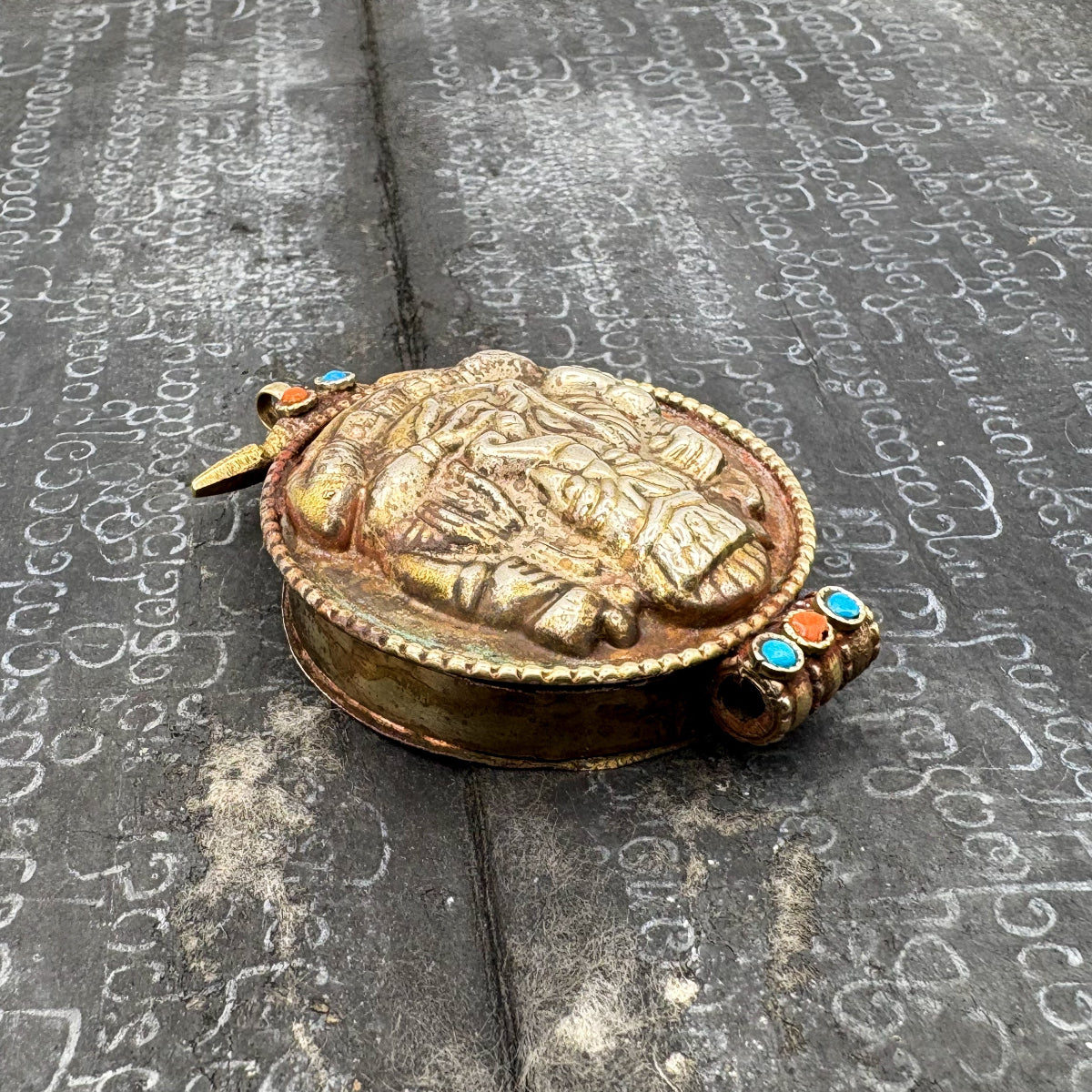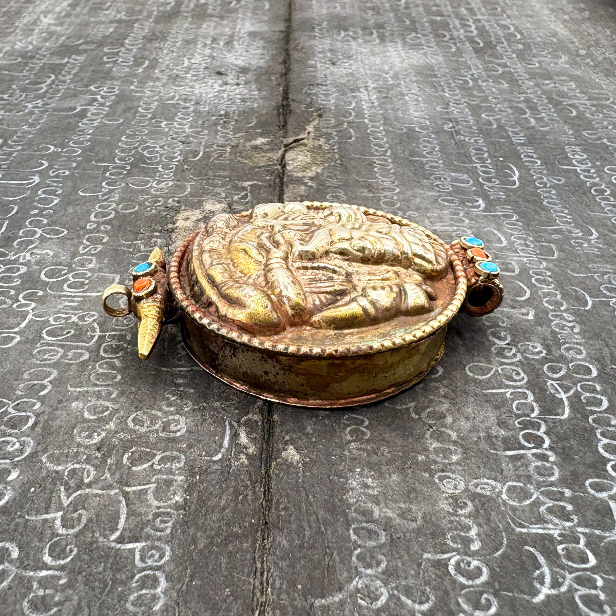 Brass Ganesha Gau with Inlay Locket Pendant Amulet