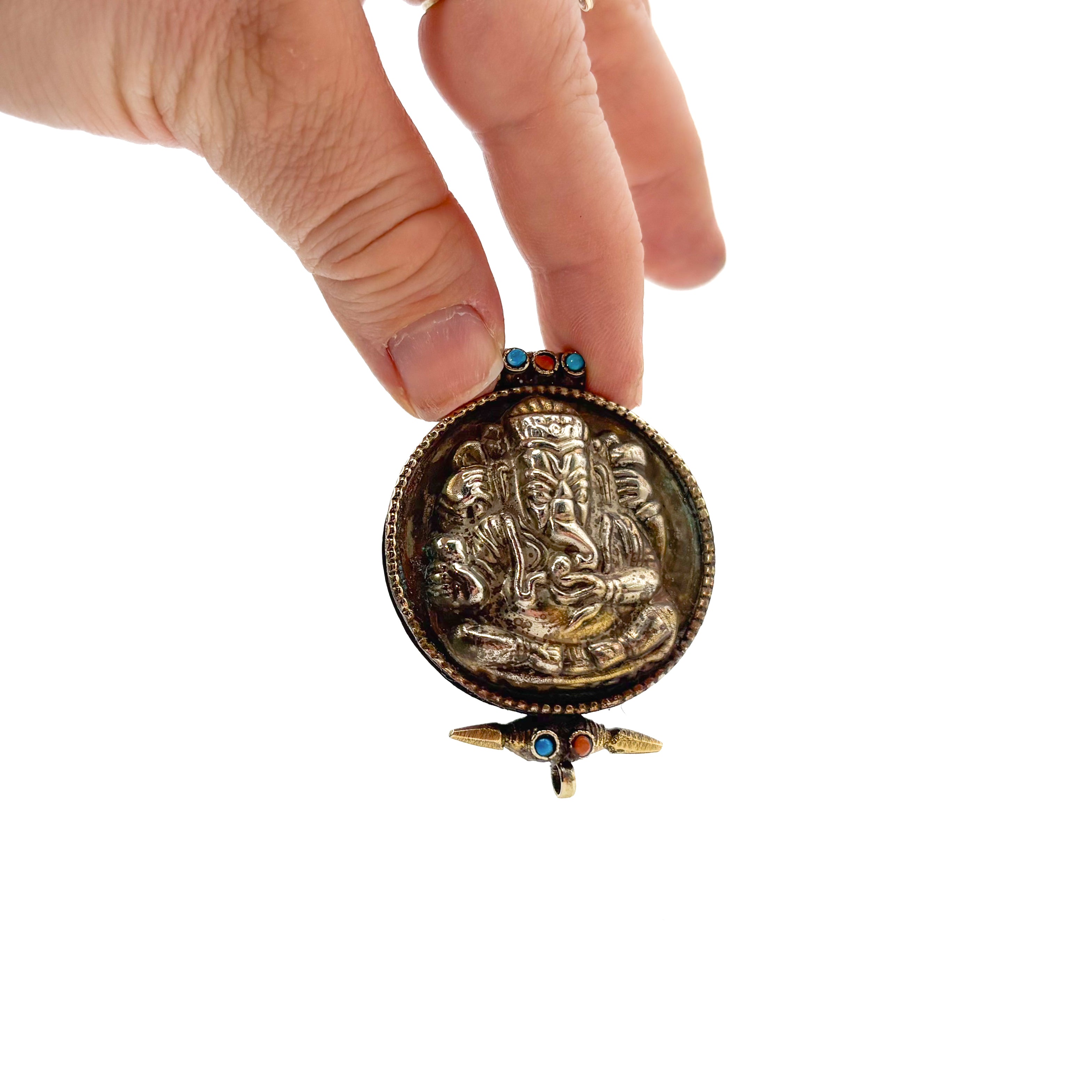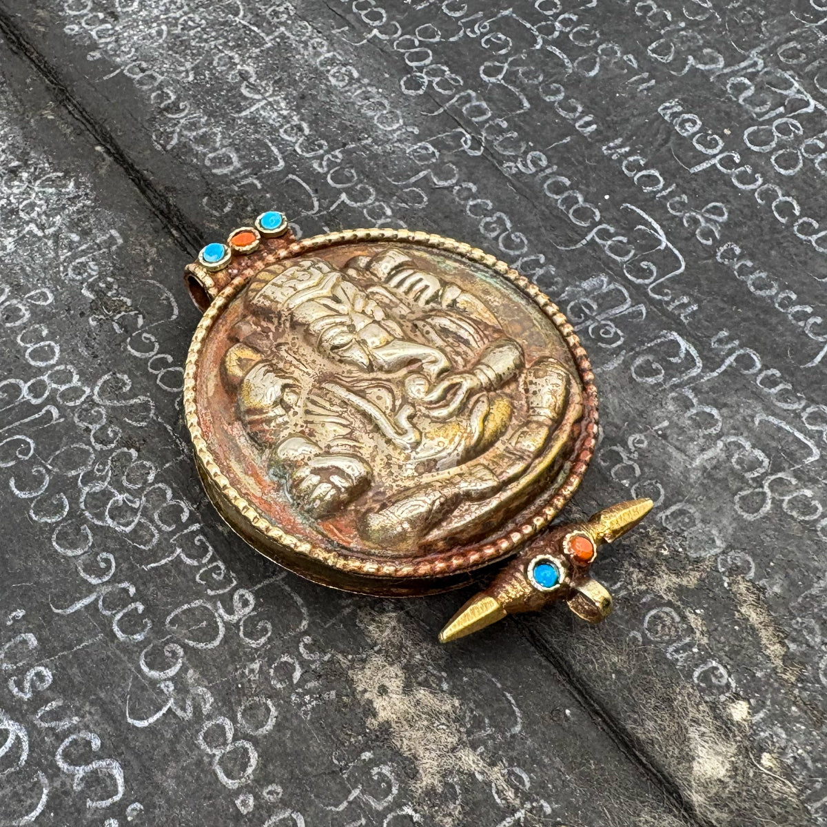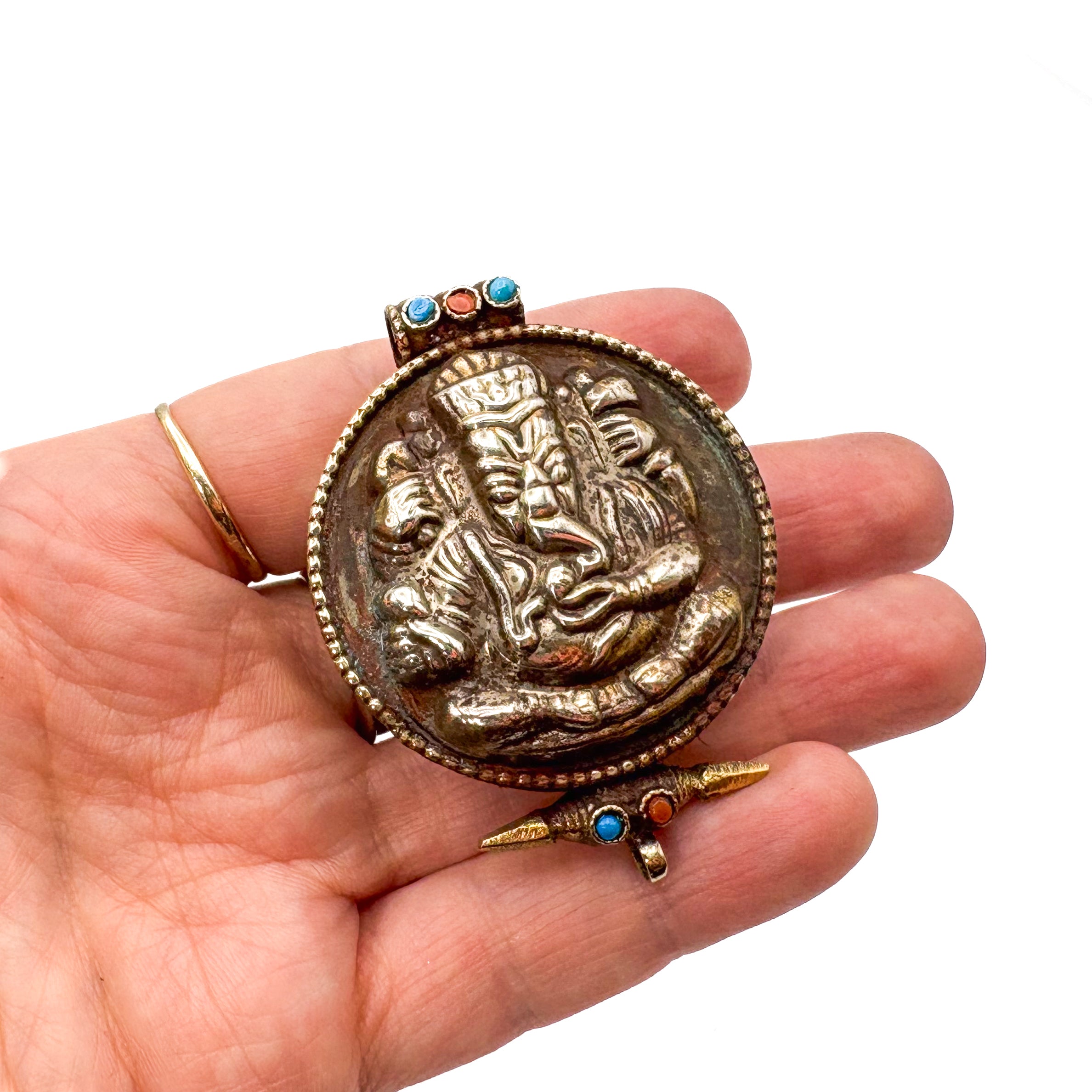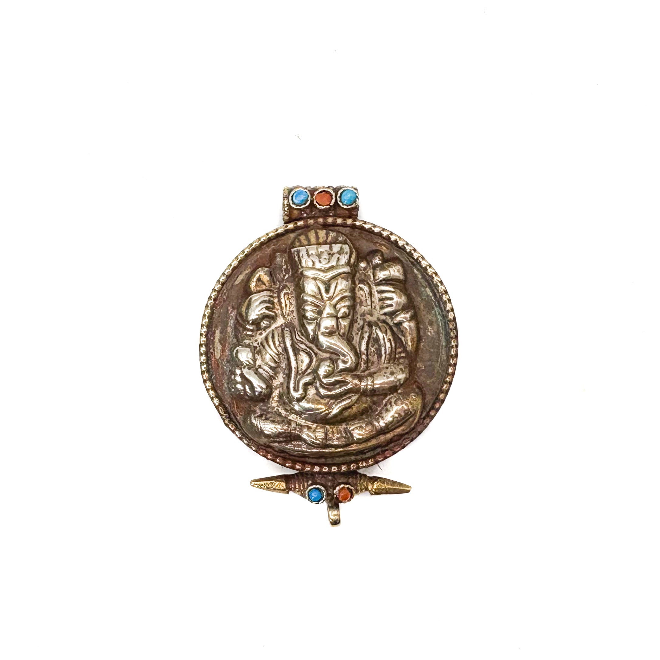 Brass Ganesha Gau with Inlay Locket Pendant Amulet