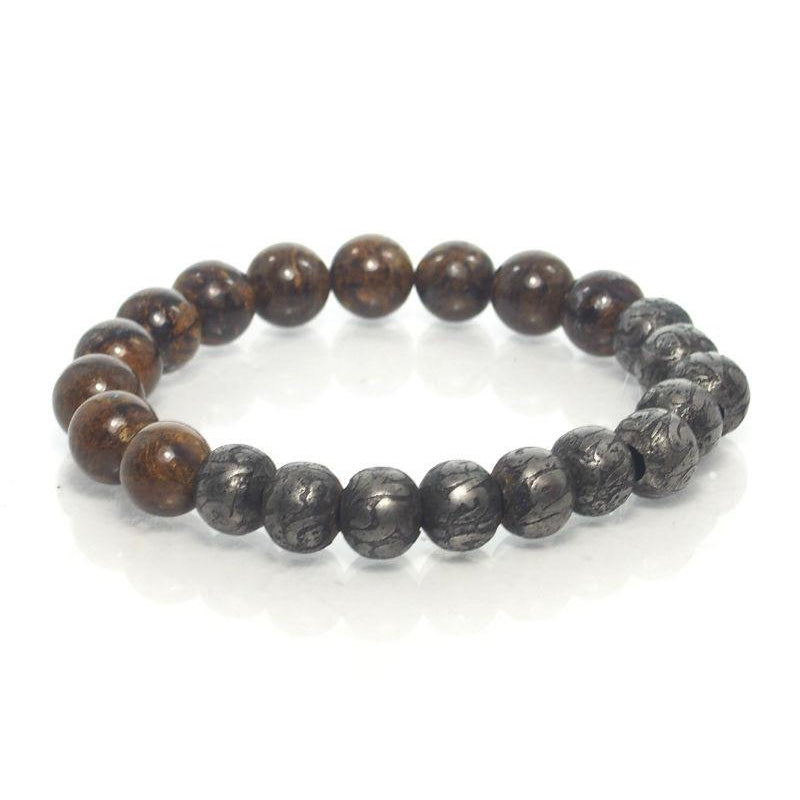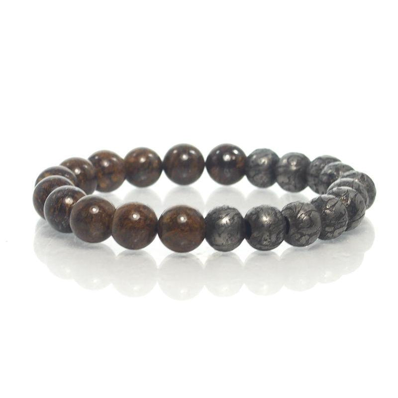 • Bronzite and Iron "Om" Bead Stretch Bracelet