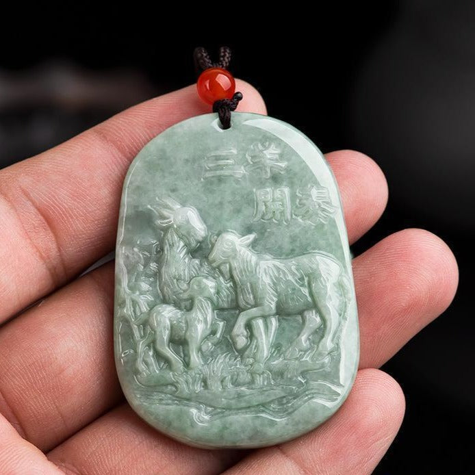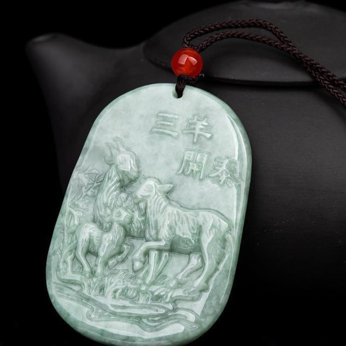 Burmese Jade Sheep Pendant Necklace Green Carved Jadeite Necklace