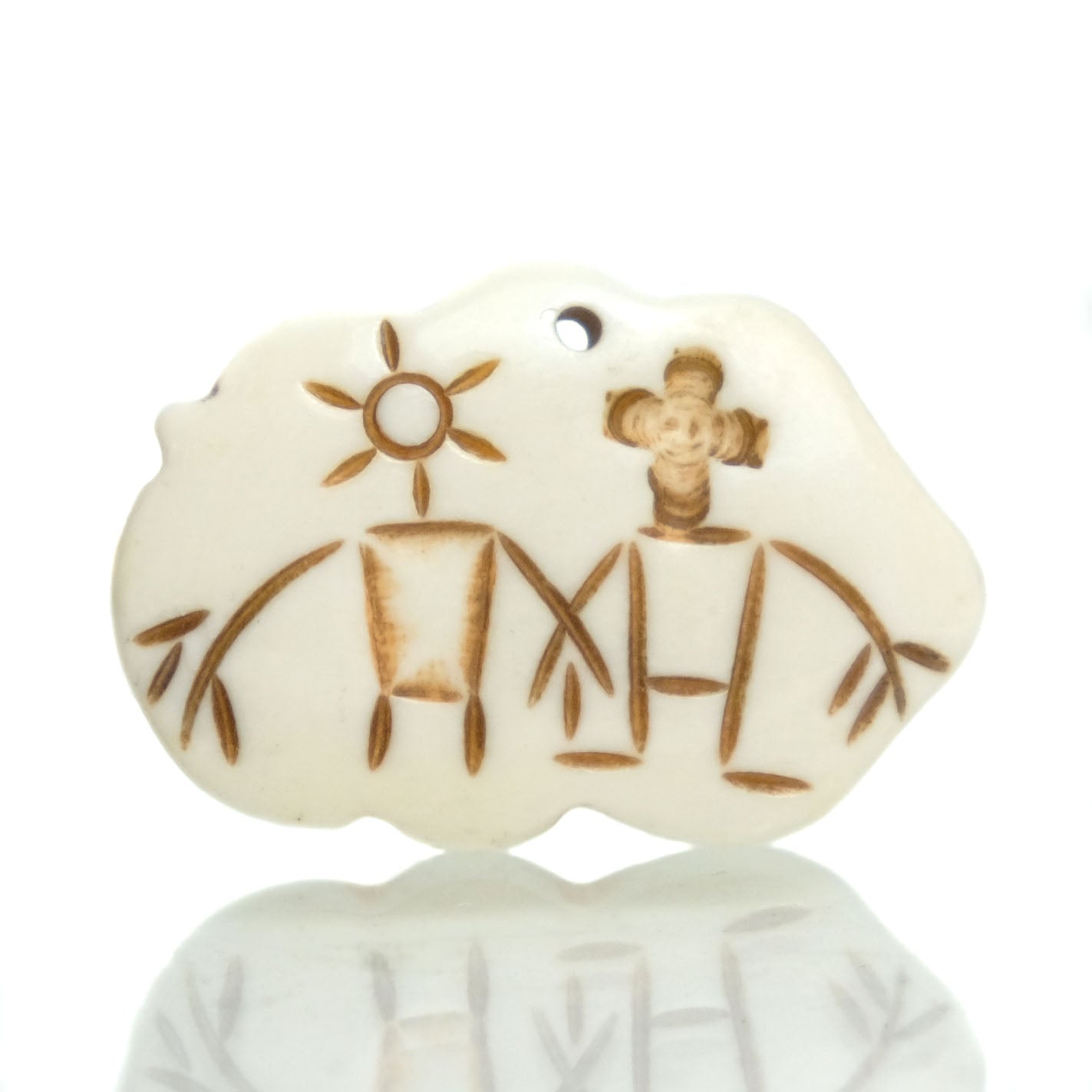 Carved Bone Pendant, Earth Mother Goddess with Sky Father
