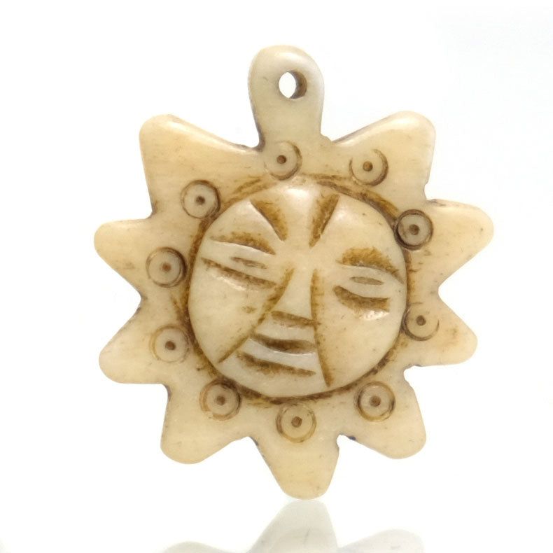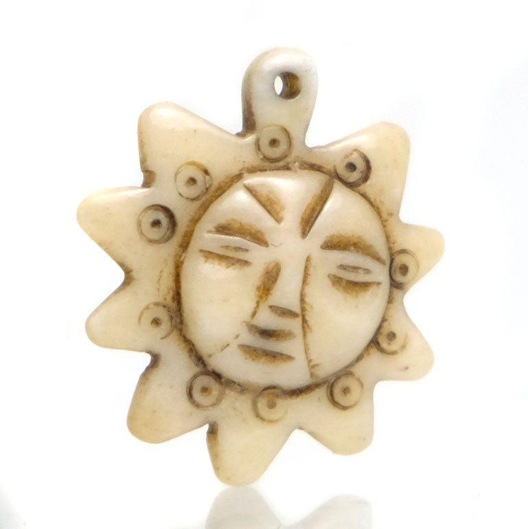 Carved Bone Pendant, Sun 4 Solar Symbol